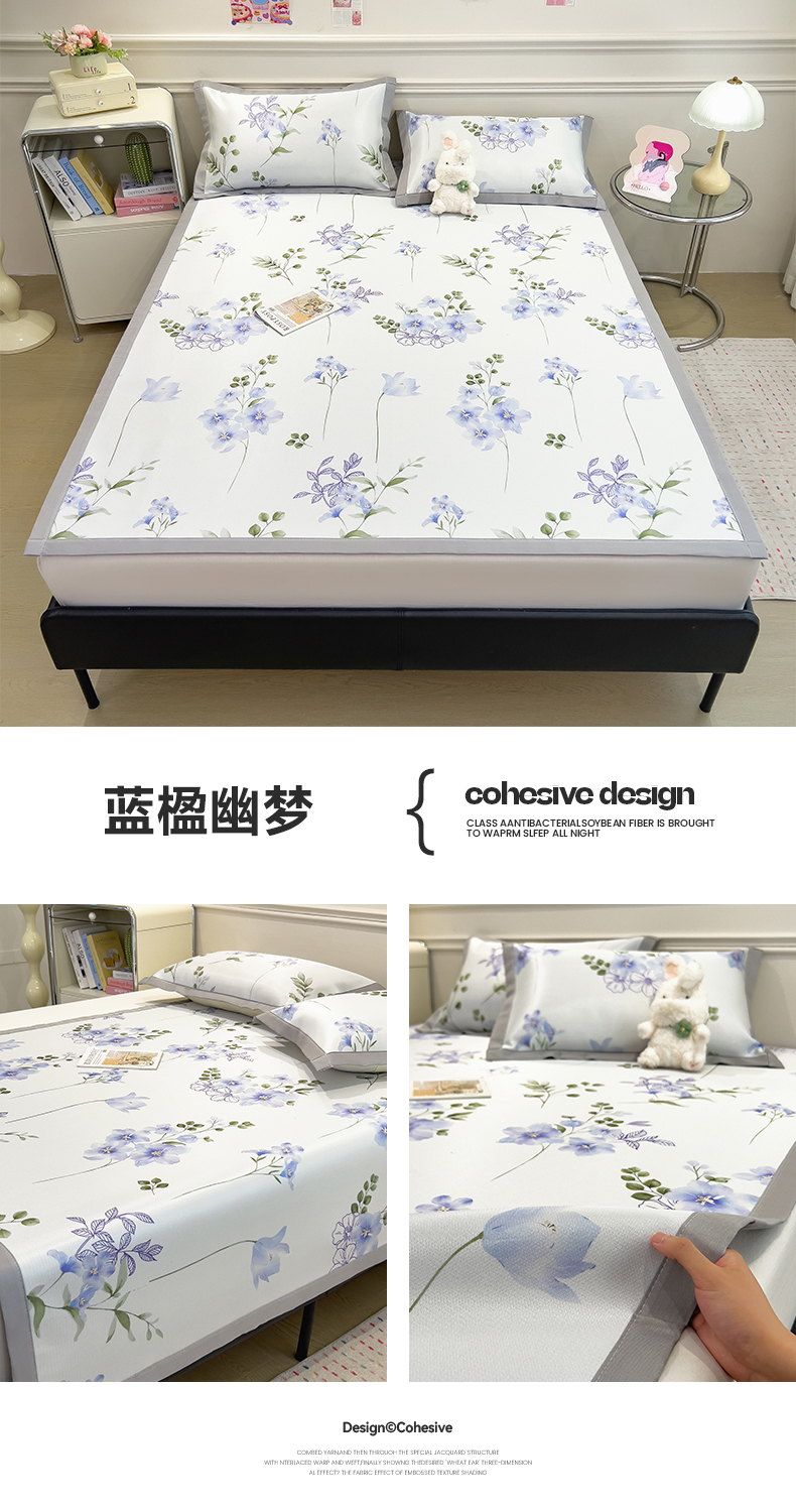 商品名称:摩妮卡 2025小清新数码冰丝席 碳光席三件套 蓝楹幽梦
