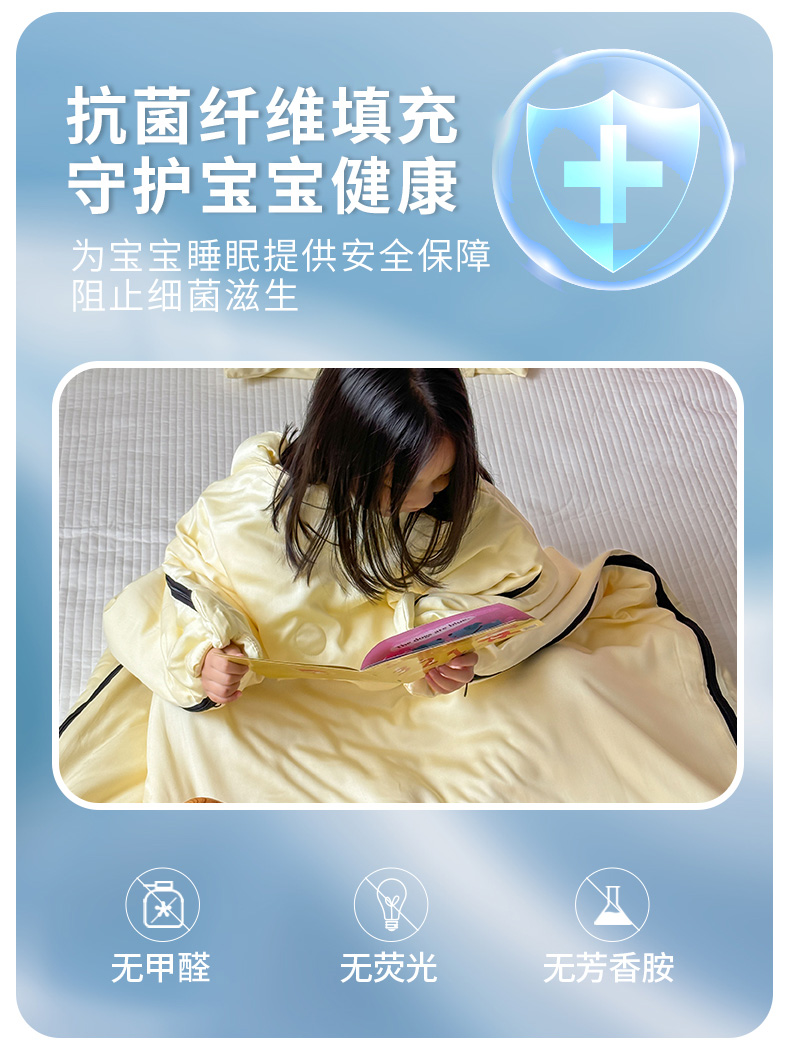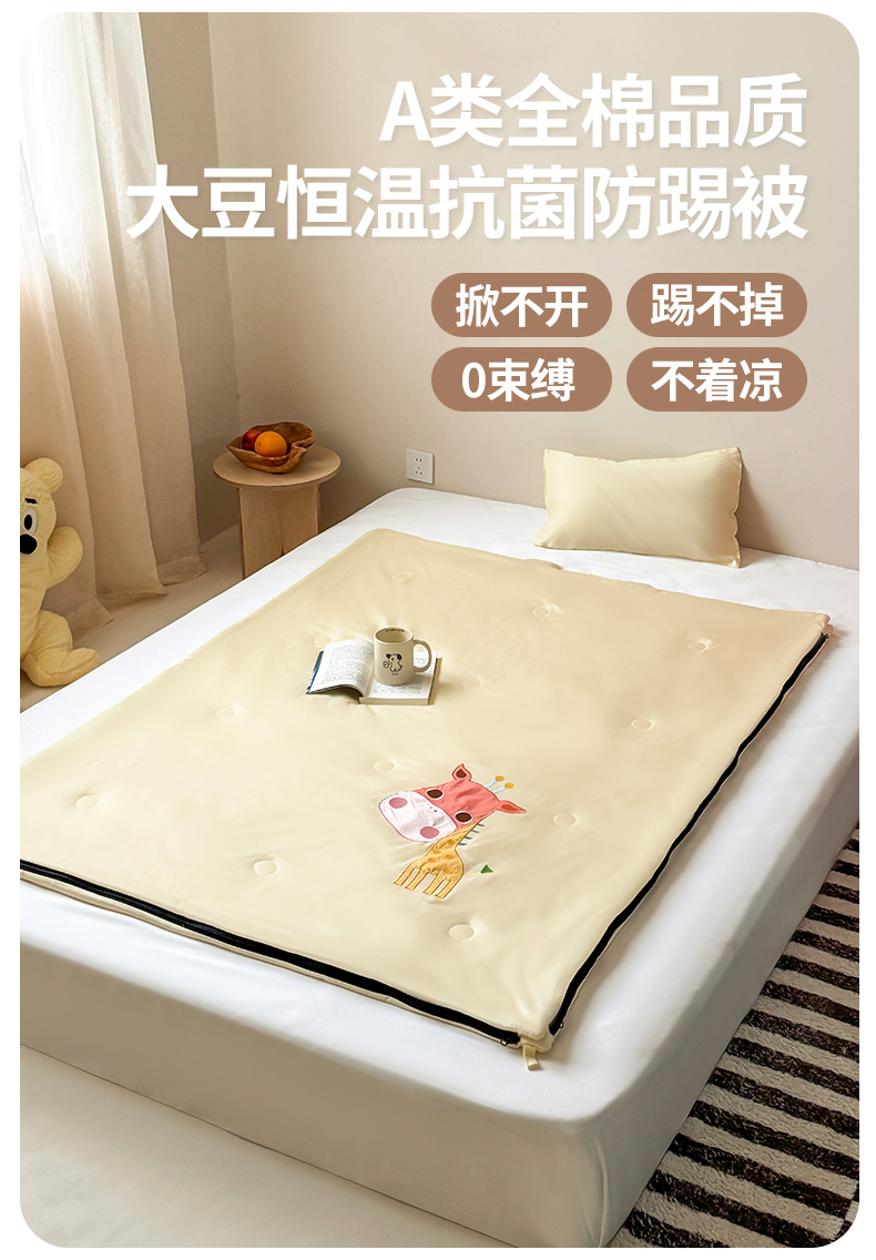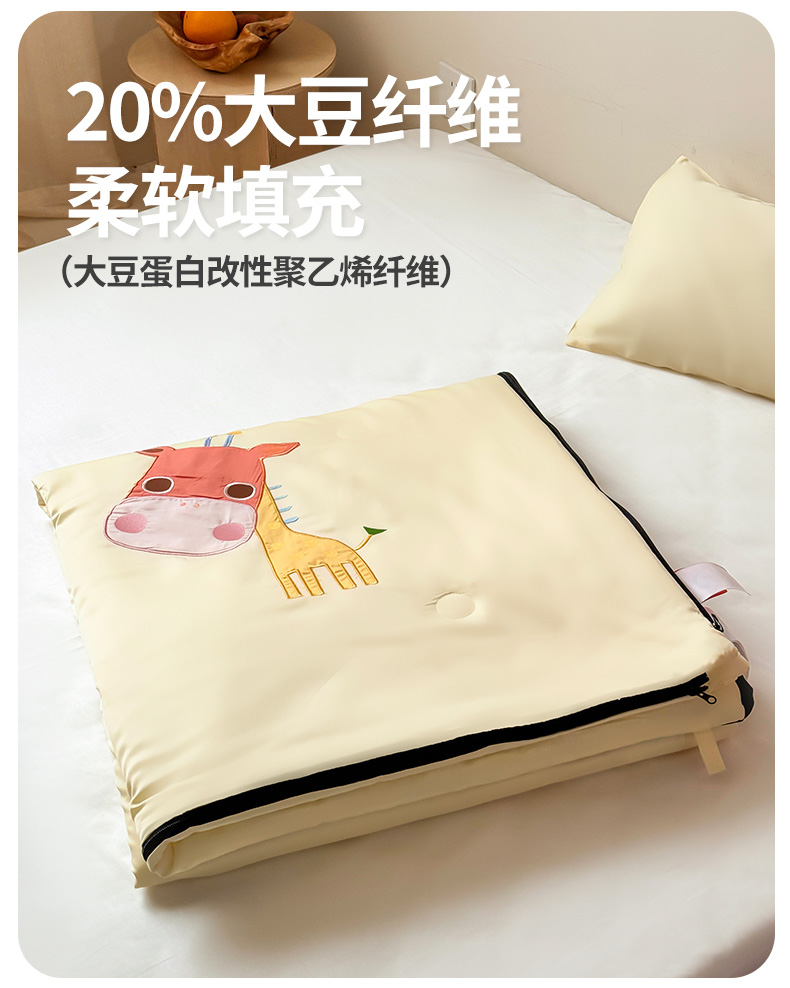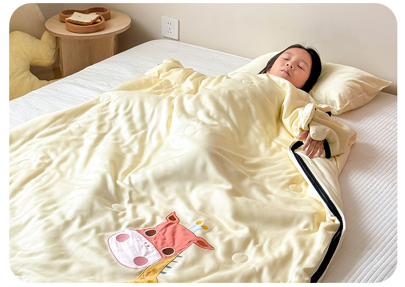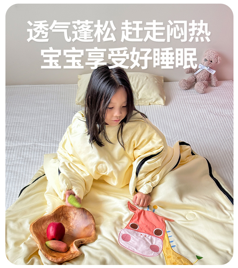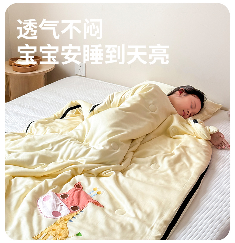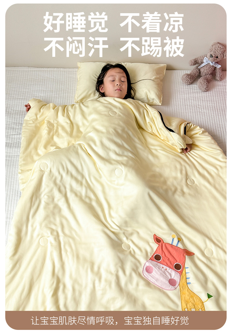 商品名称:喜多兔儿童家纺 2025新款萌宝系列40S纯棉夏季睡袋防踢被 黄色长颈鹿萌萌