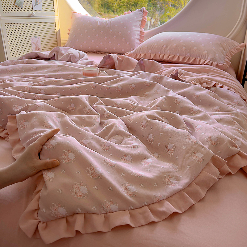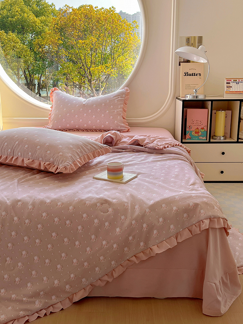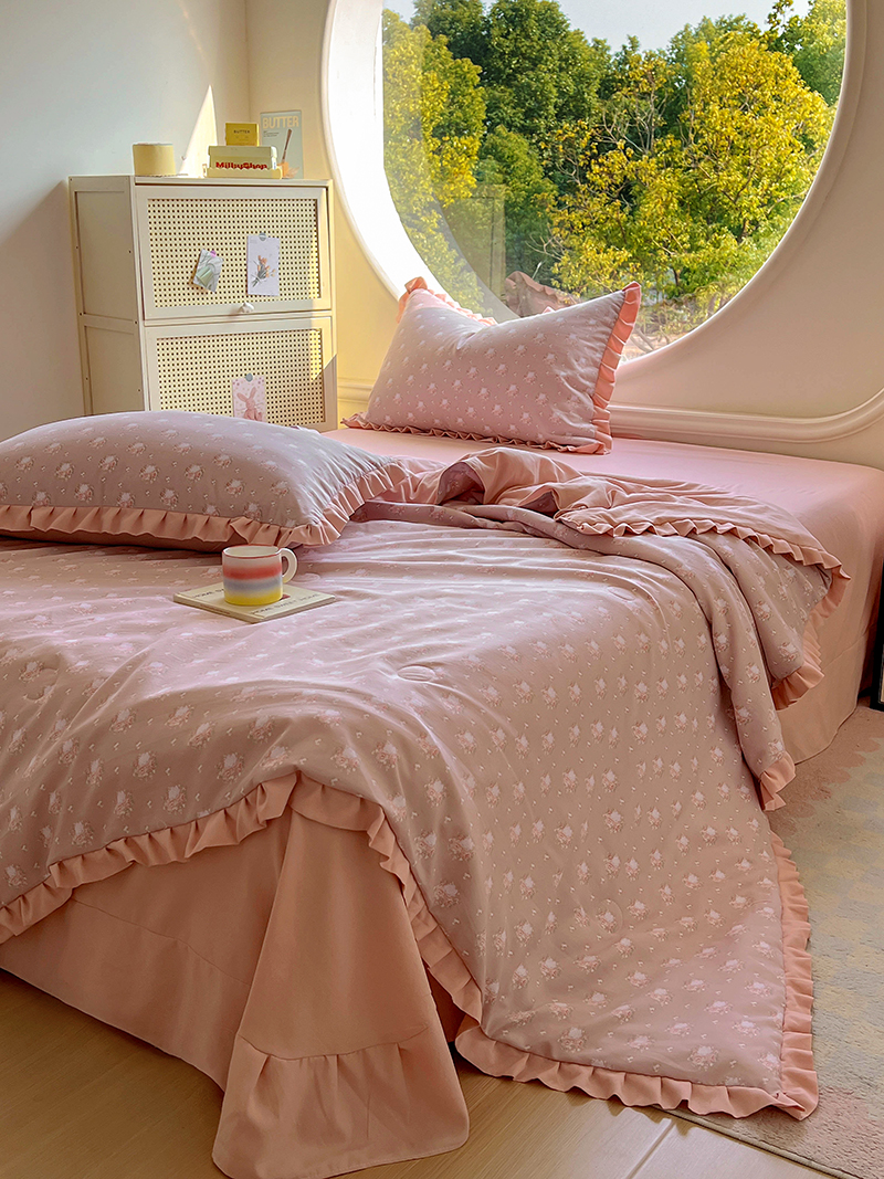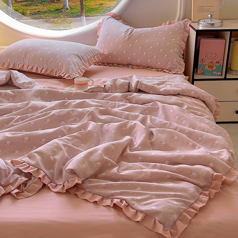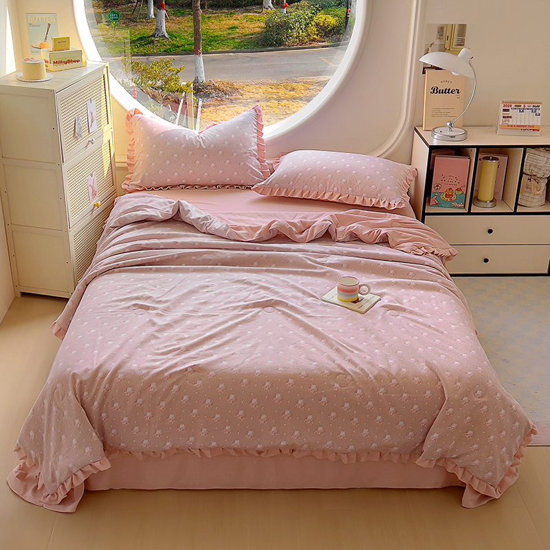 (总)欧尚 2026新款花边云感棉夏被床盖四件套,春辰绿,朵真,绯常,利莲,密朵,南朵,晴川木也