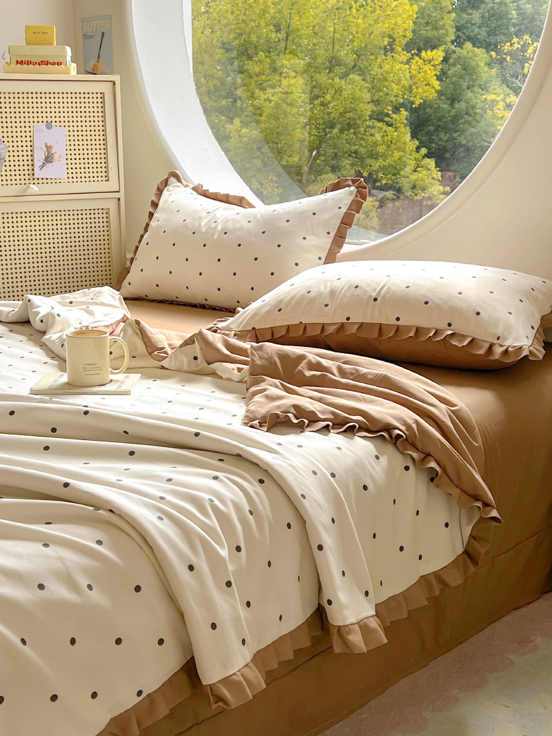 (总)欧尚 2025新款牛奶绒花边床盖四件套,粉点点,花小玉,咖色小心心,蓝点点,慕然,仙女粉,仙女紫