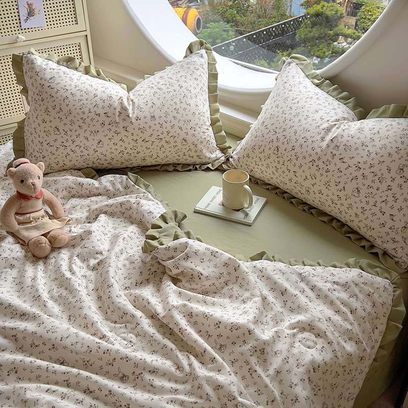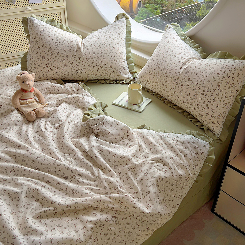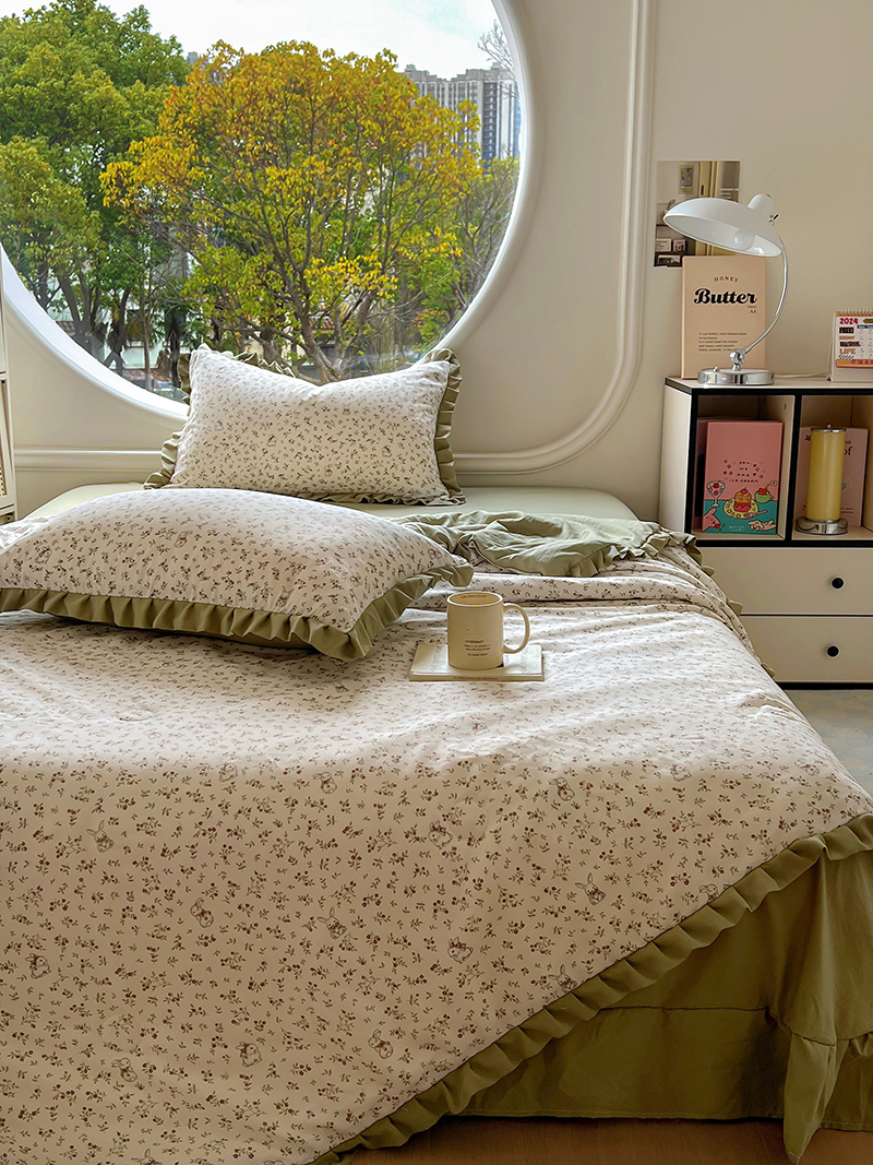 (总)欧尚 2026新款花边床盖四件套,春和,花束,花野,灰樱桃,咖爱心,咖豹纹,咖啡小猫,梨花落,绿爱心,梦境,木马,奶油波点,暖橘枝,暖心,人间草木,田园兔,小女孩,星愿,摇摇马,紫爱心,紫豹纹,紫苏