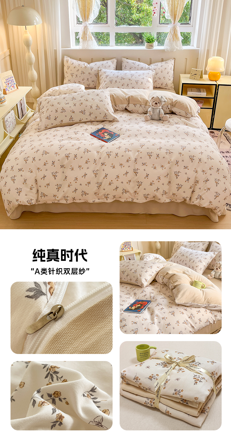 当前位置: 91家纺网 > 商品网购 > 床品套件 > 四件套 > 其它四件套 > 玖明2025新款A类加厚柔软针织棉双层纱四件套 纯真时代