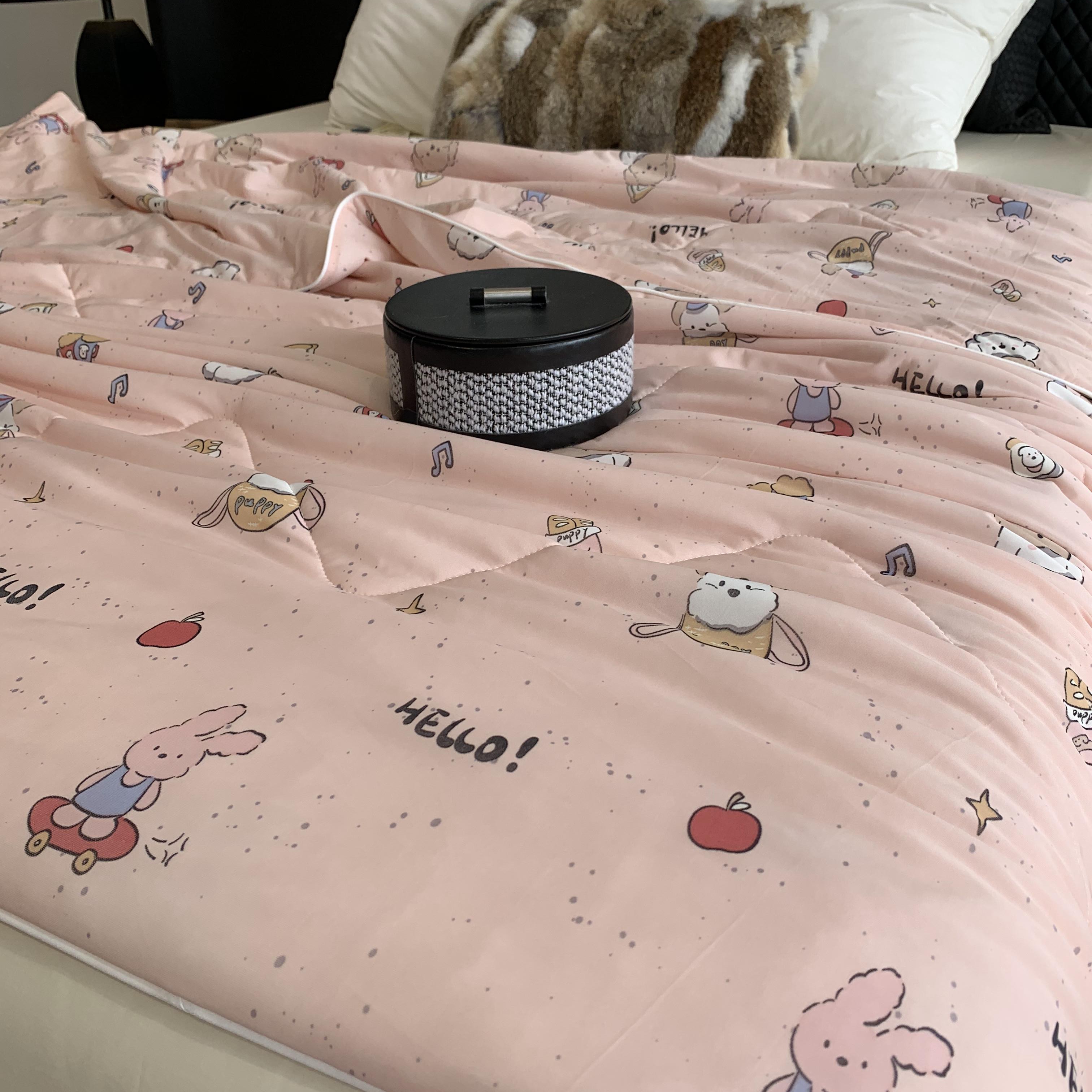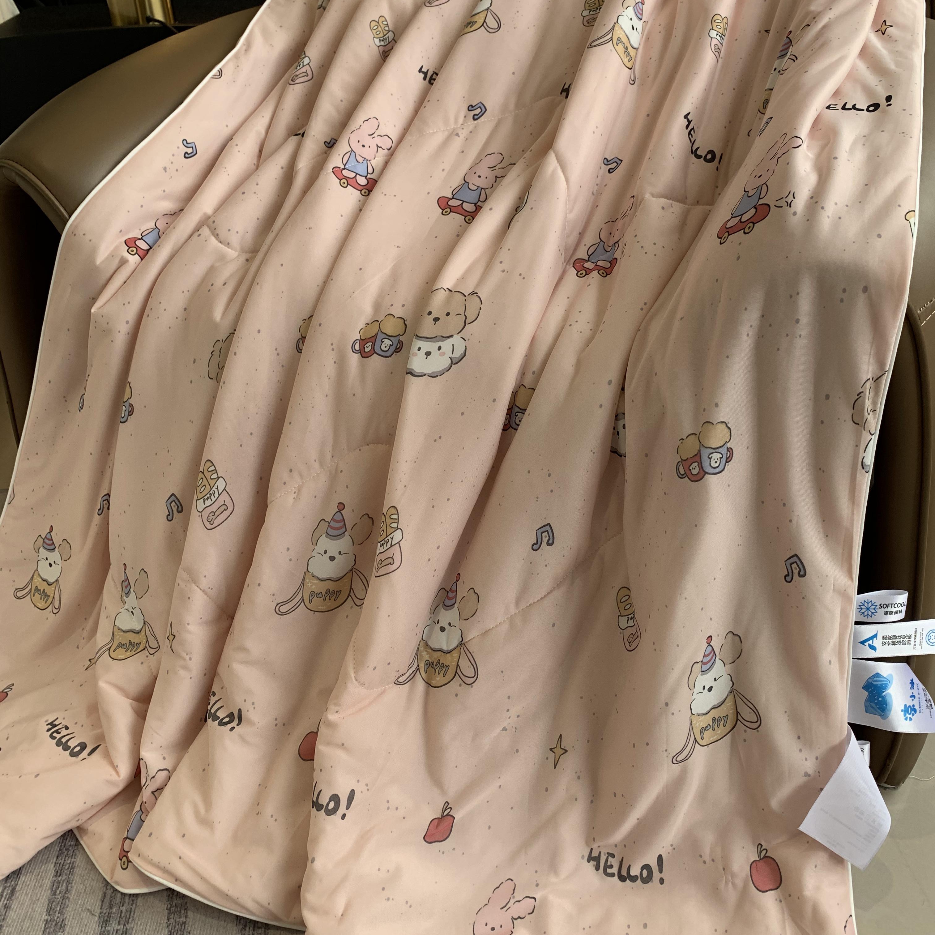 商品名称:2025新款小冰皮夏凉被锦纶氨纶面料空调夏被凉感丝单夏被空调被 小兔粉