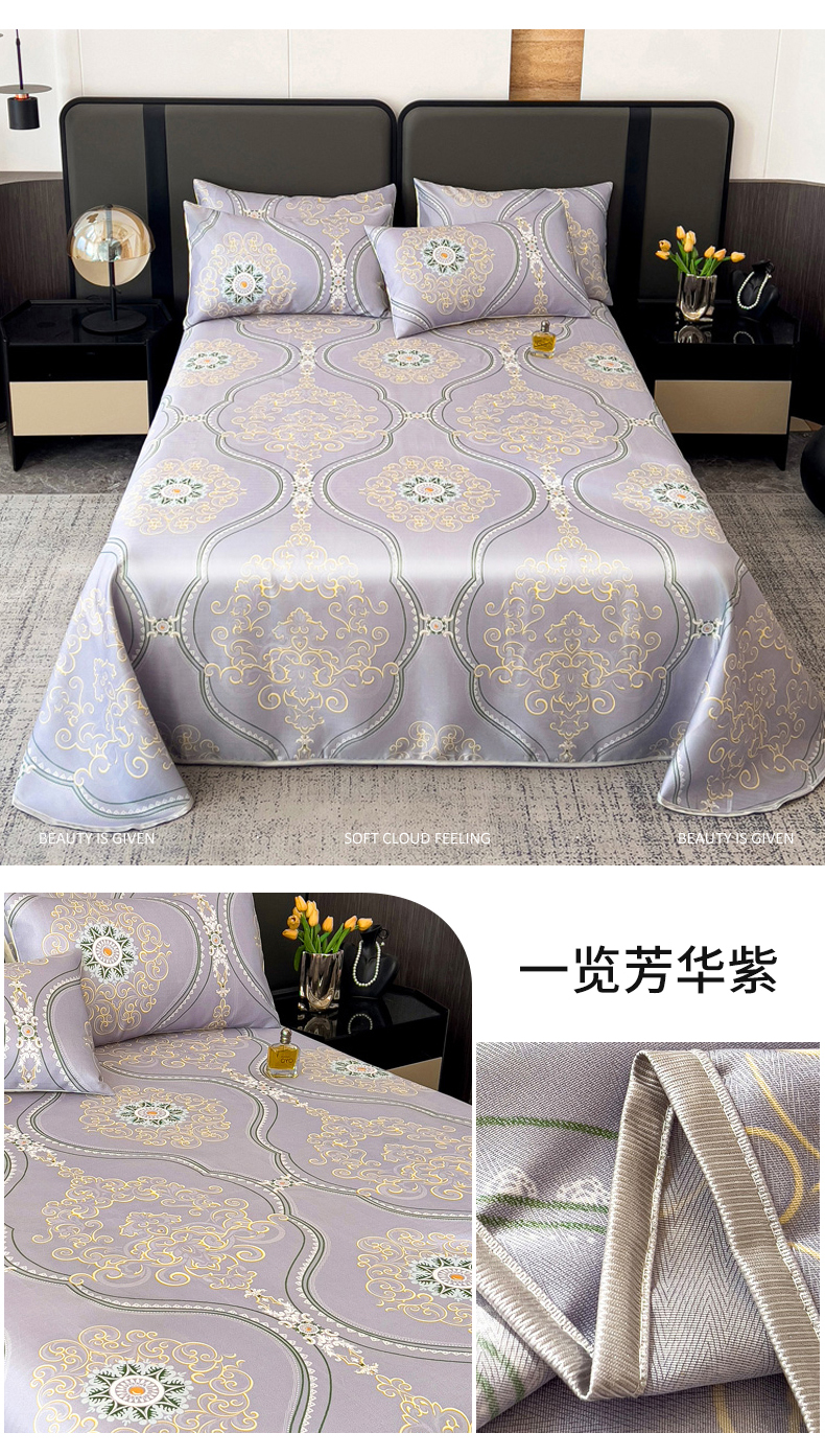 商品名称:纽缦家纺 2025新款印花冰丝防滑床单 一览芳华紫