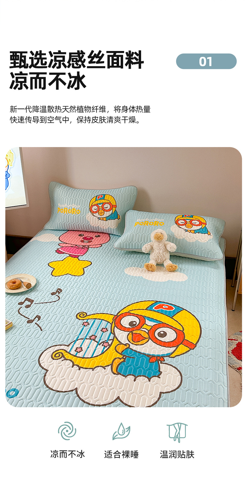 商品名称:金爱家2025新款啵乐乐乳胶凉席 凉席音乐派对