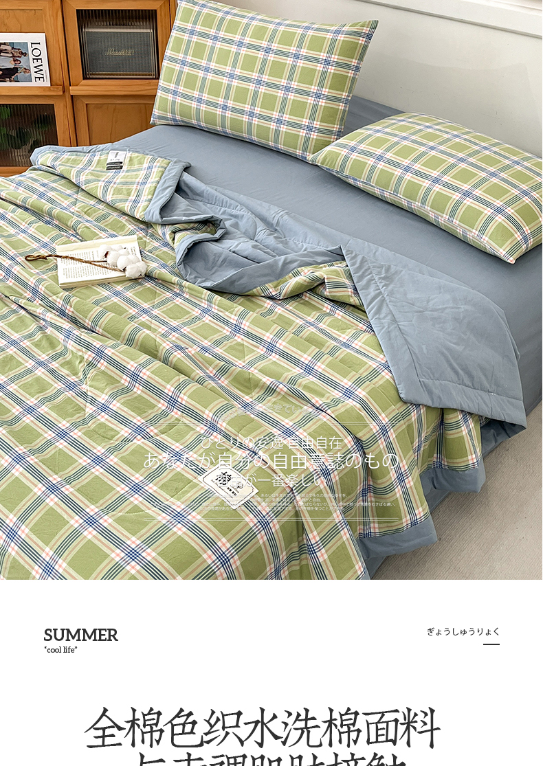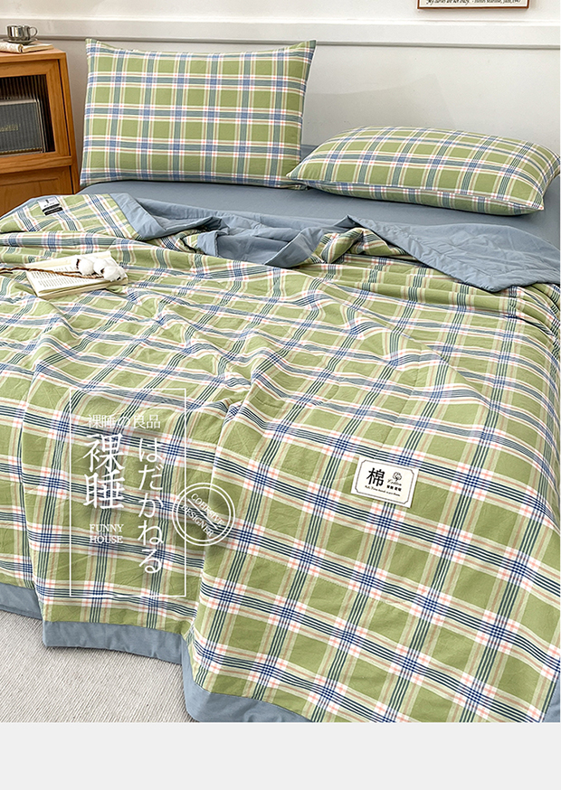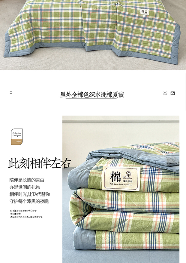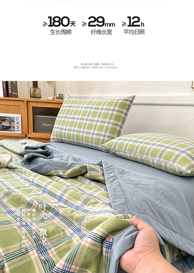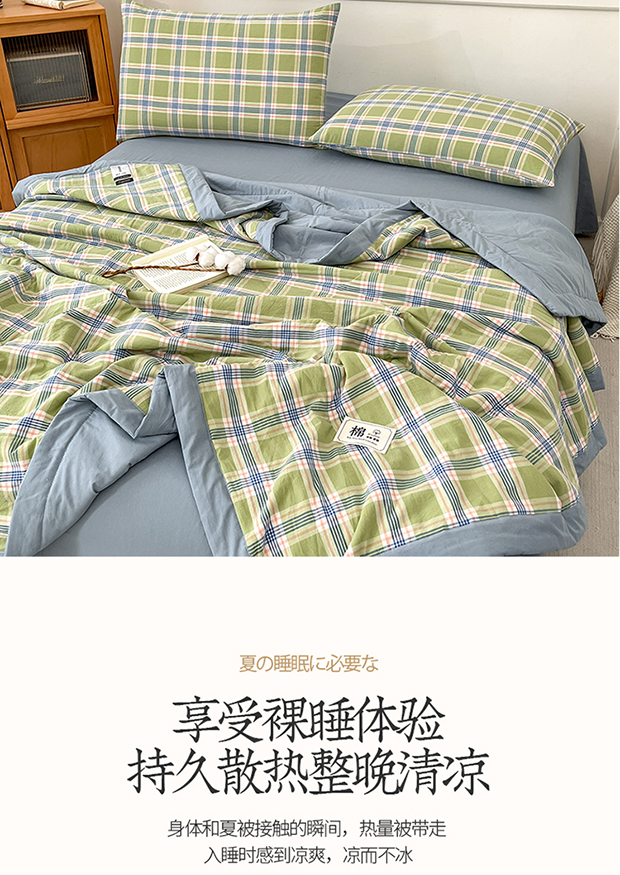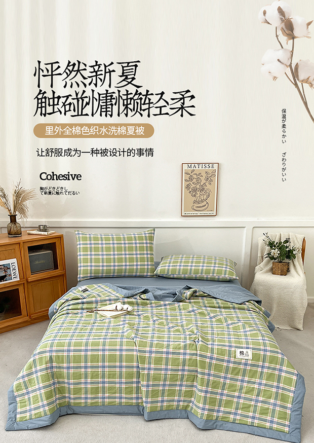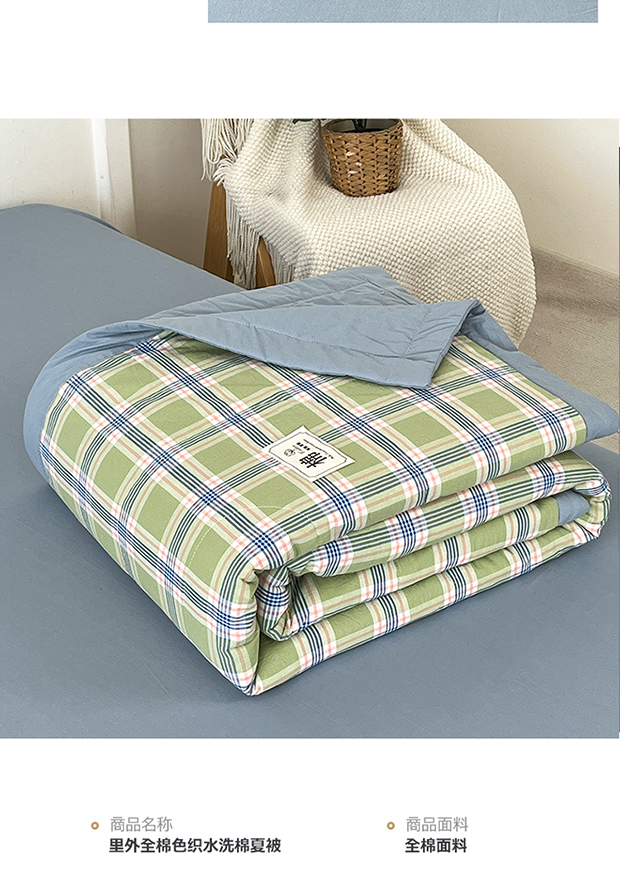 • 91家纺网 家纺一手货源 找家纺 鸣升家纺 2025新款100%里外全棉棉花夏被无印风全棉色织水洗棉夏凉被空调被夏被春秋被单人可机洗 初时绿