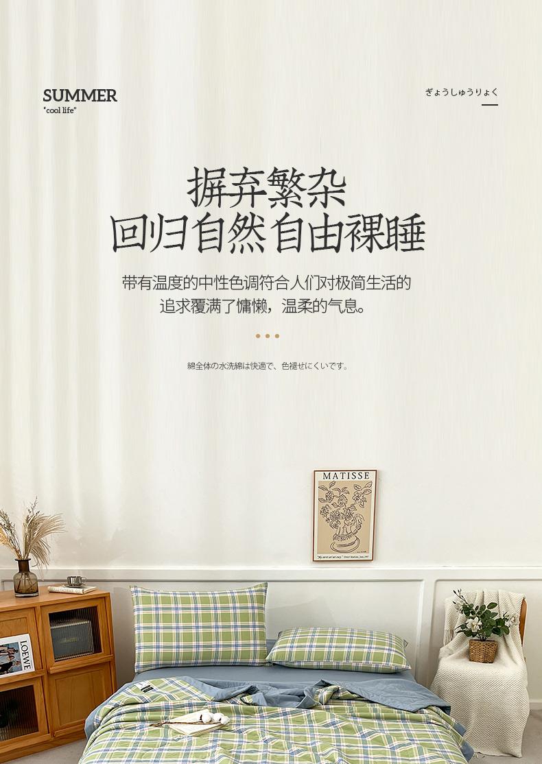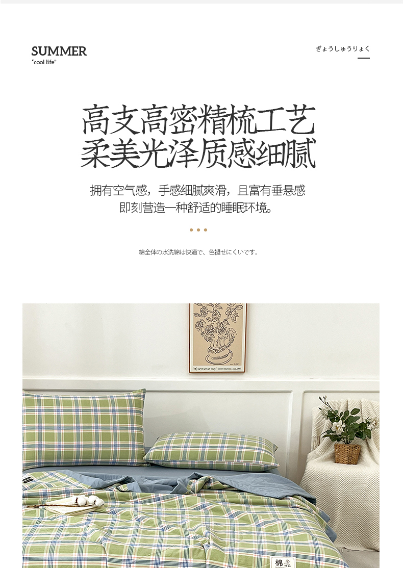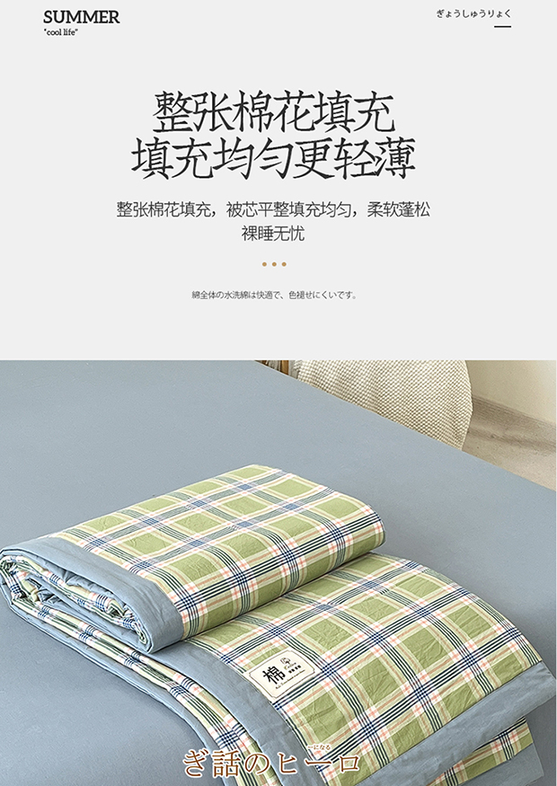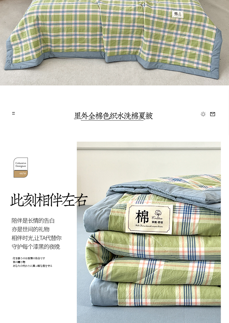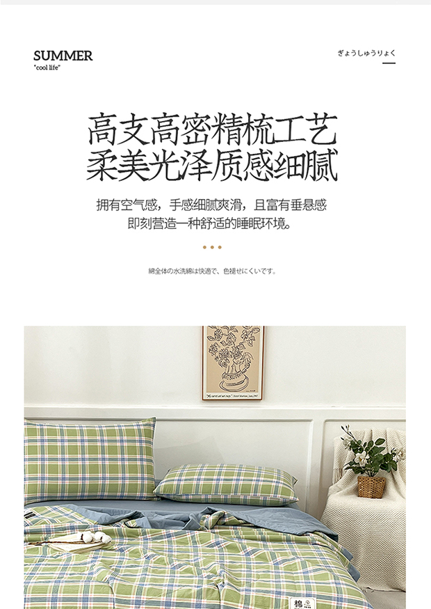 • 91家纺网 家纺一手货源 找家纺 鸣升家纺 2025新款100%里外全棉棉花夏被无印风全棉色织水洗棉夏凉被空调被夏被春秋被单人可机洗 初时绿