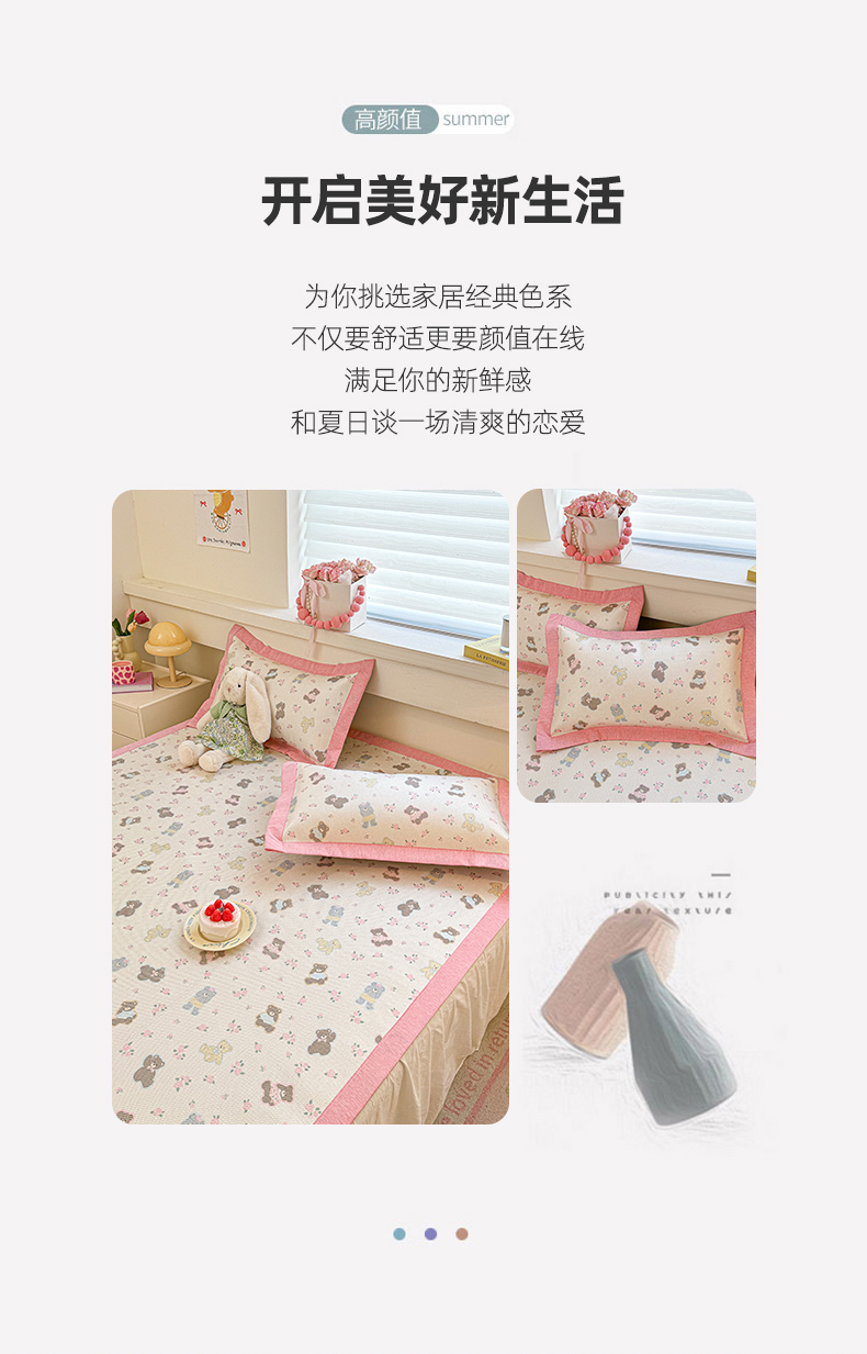 花言狐语 2025新款印花真冰藤冰凉席 小熊乐园