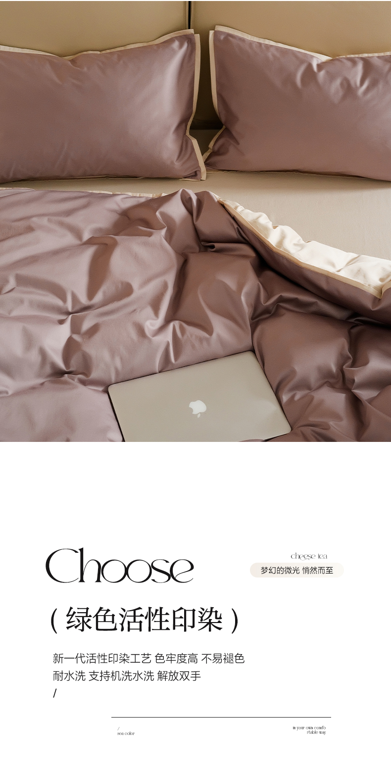 (总)EH家居 2026新款长绒棉窄边四件套,白茶奶黄,冰草紫,初春夏田,焦糖橙,静谧蓝,泡沫粉,青葱色,山核桃棕