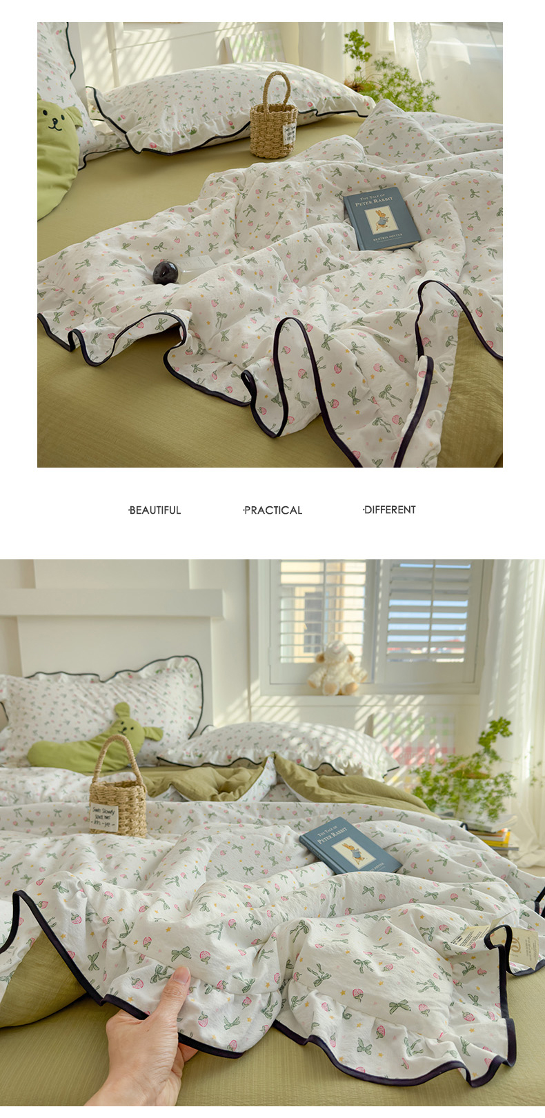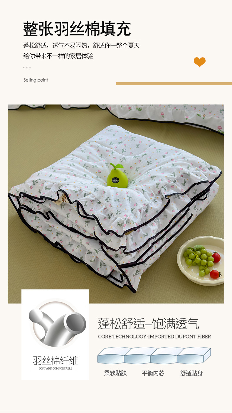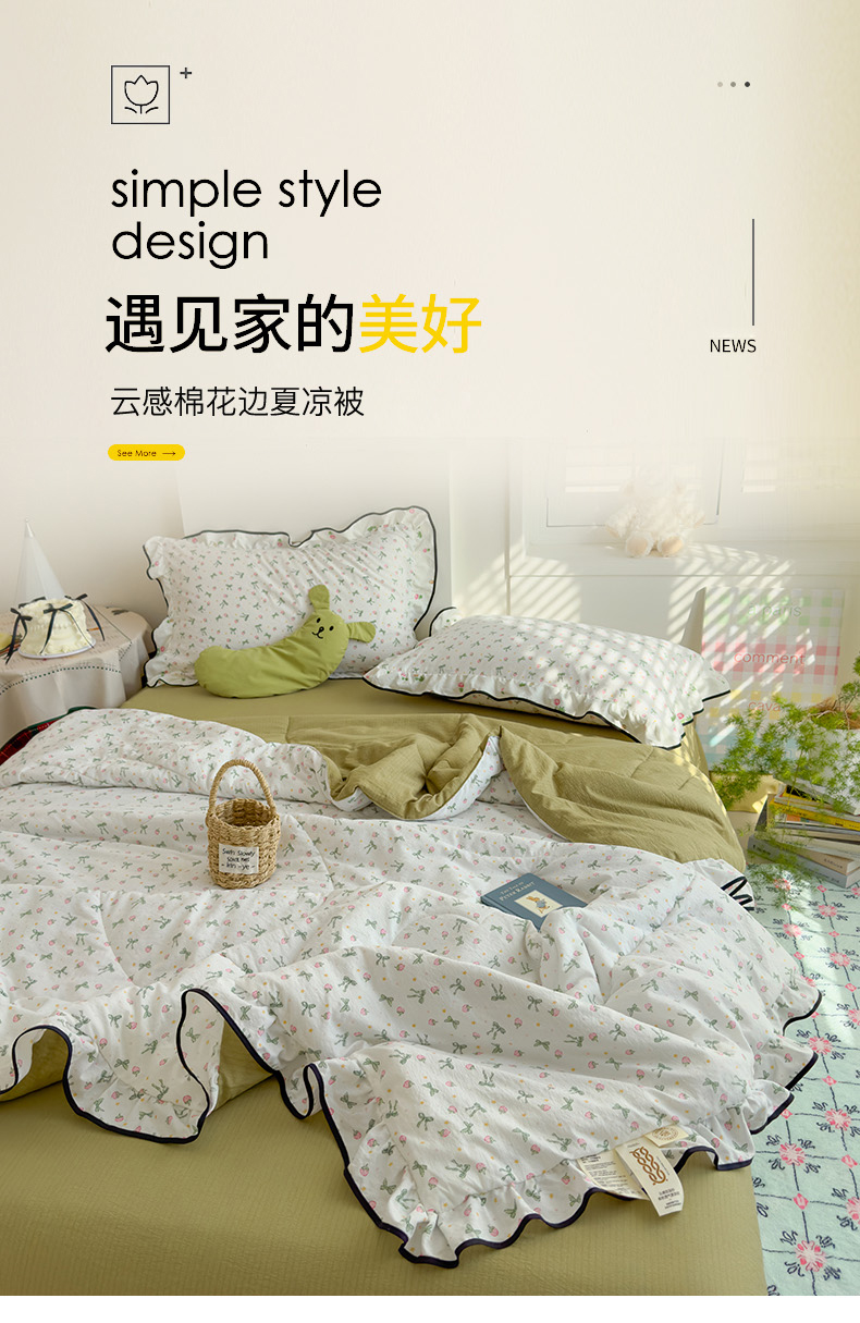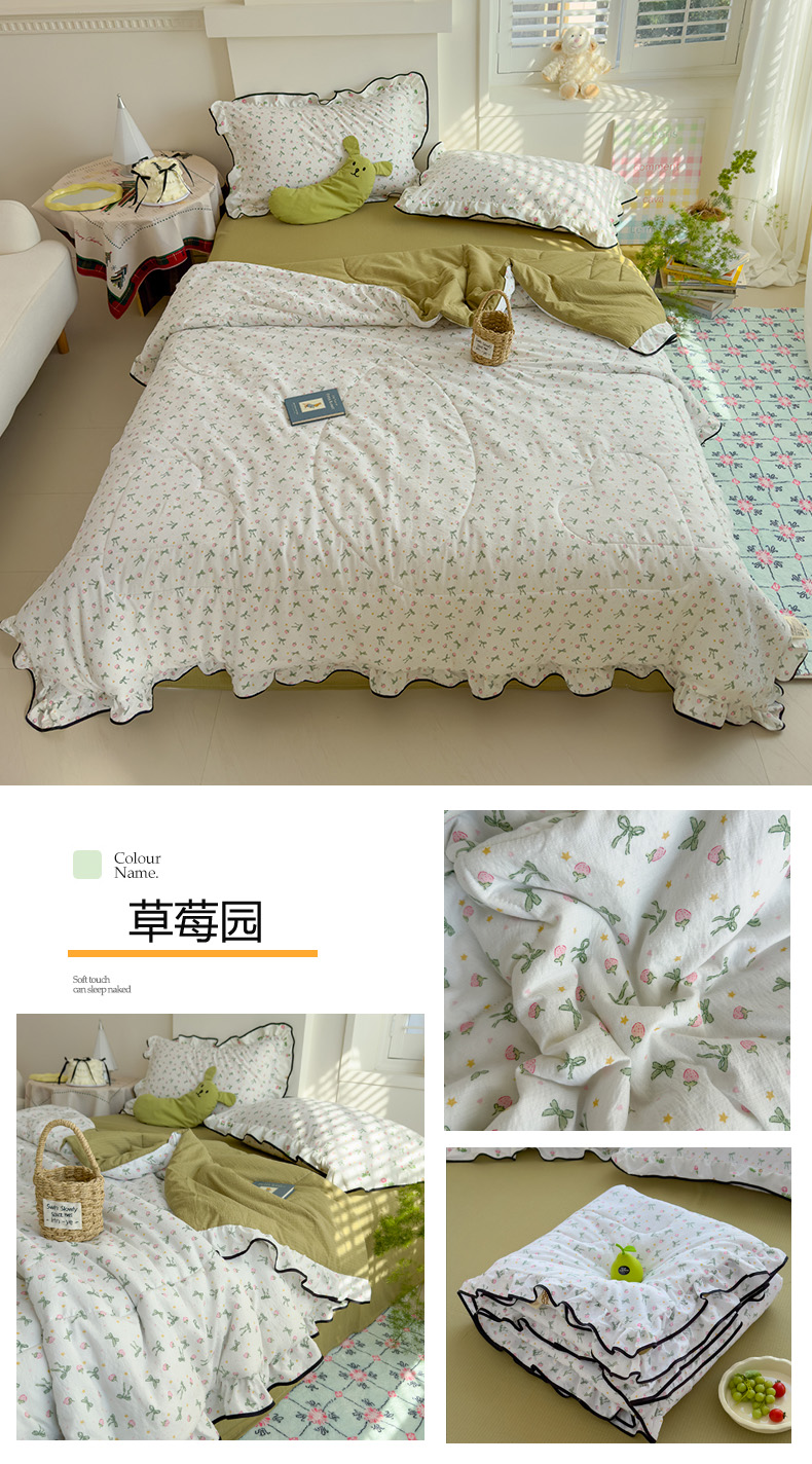 商品名称:慕尚 2025新款云感棉花边夏凉被空调被 草莓园