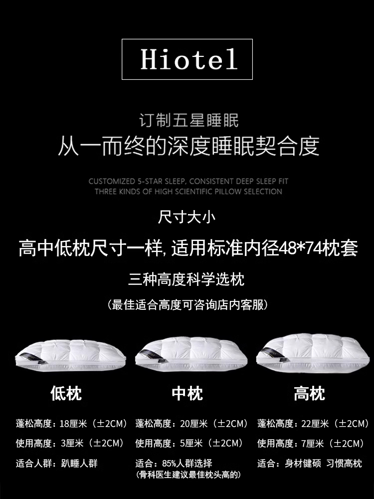 (总)梵希良品家纺 2024新款双层三枕合一护颈枕助睡眠枕头枕芯,低枕800g,中枕900g,高枕1000g