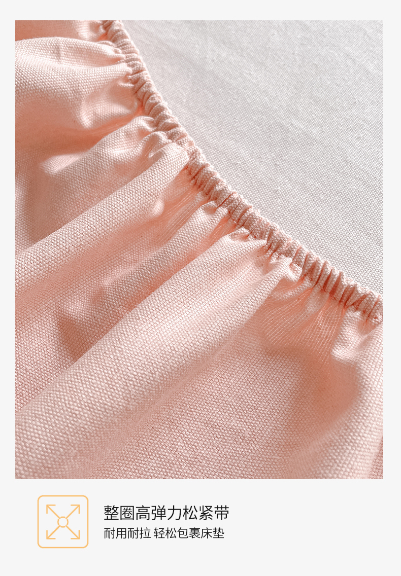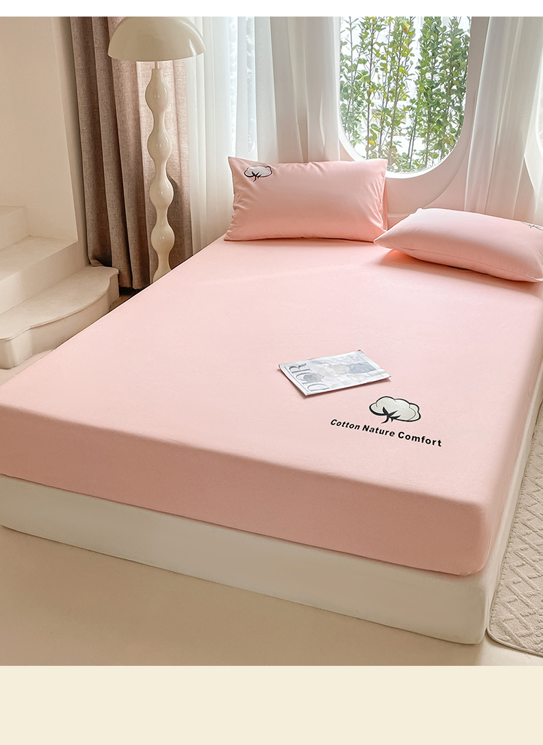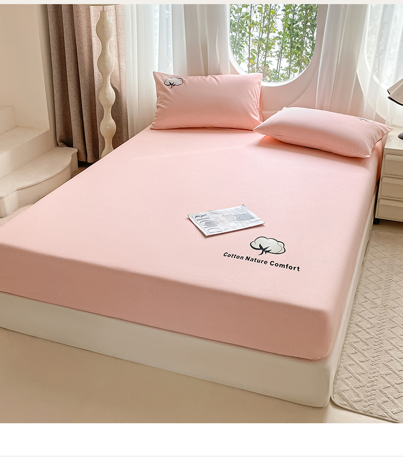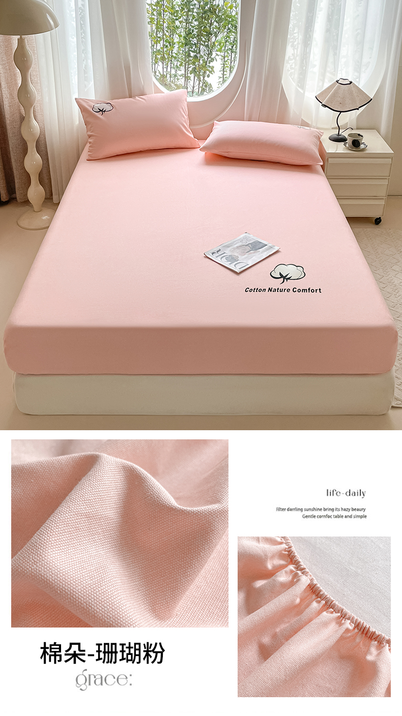 布卢姆床垫 2025新款全棉烫画全棉老粗布床笠 棉朵-珊瑚粉