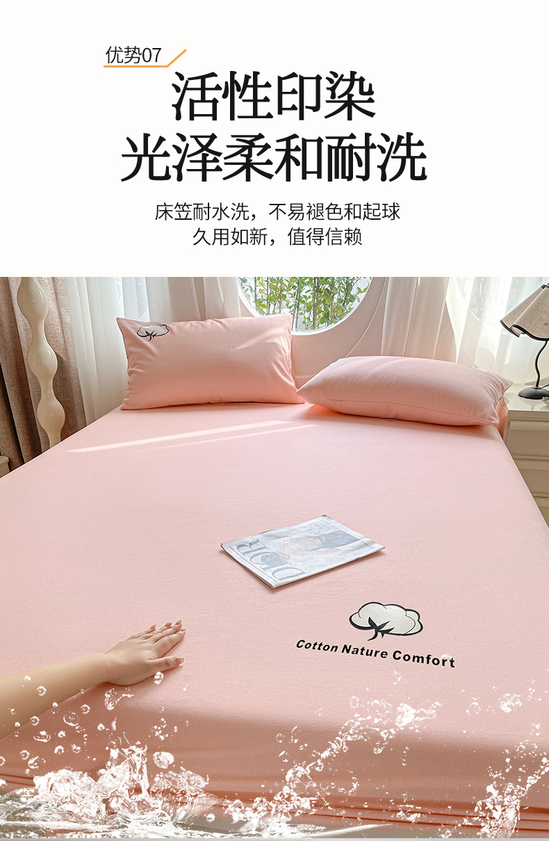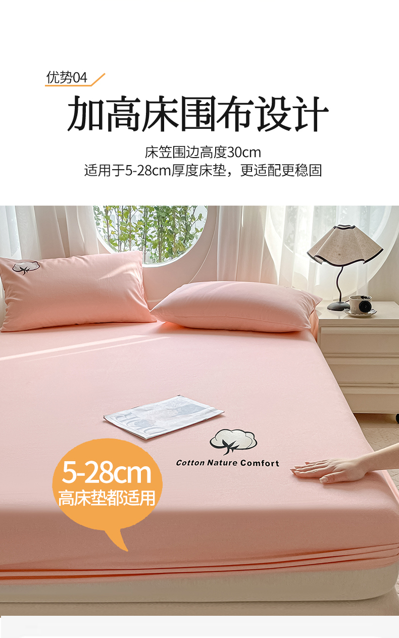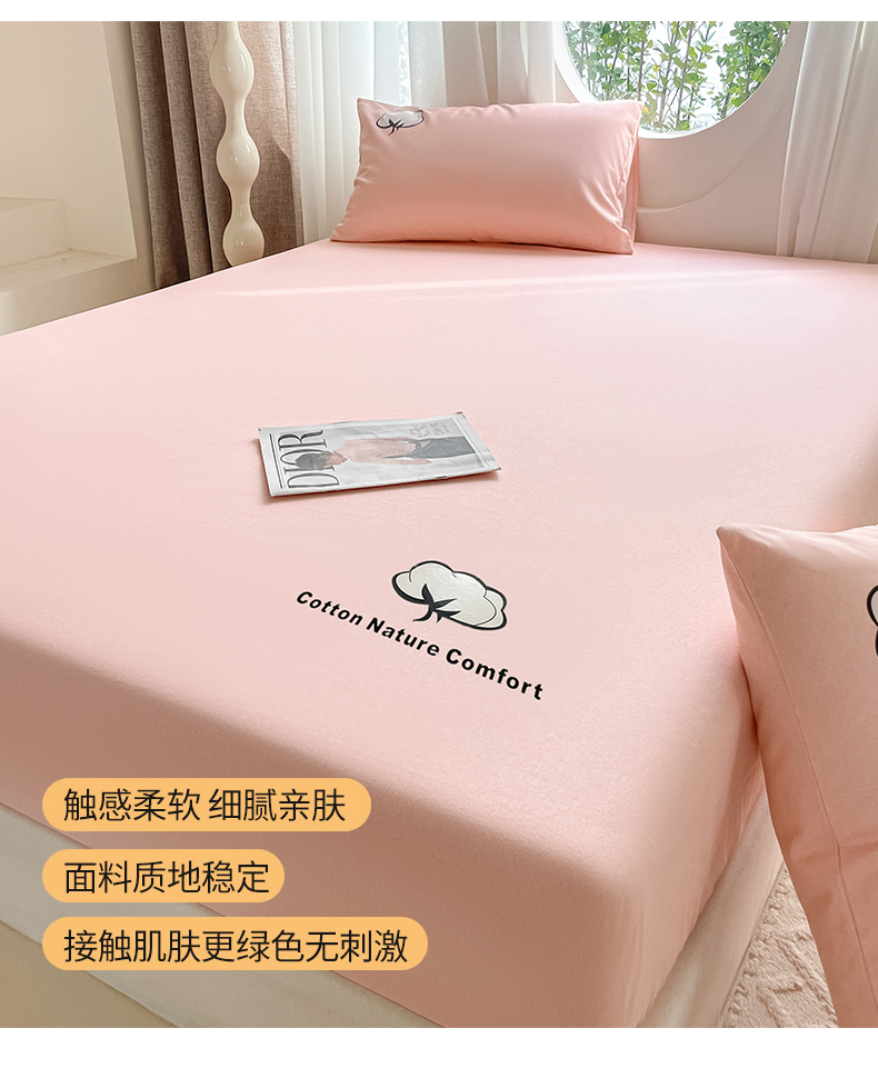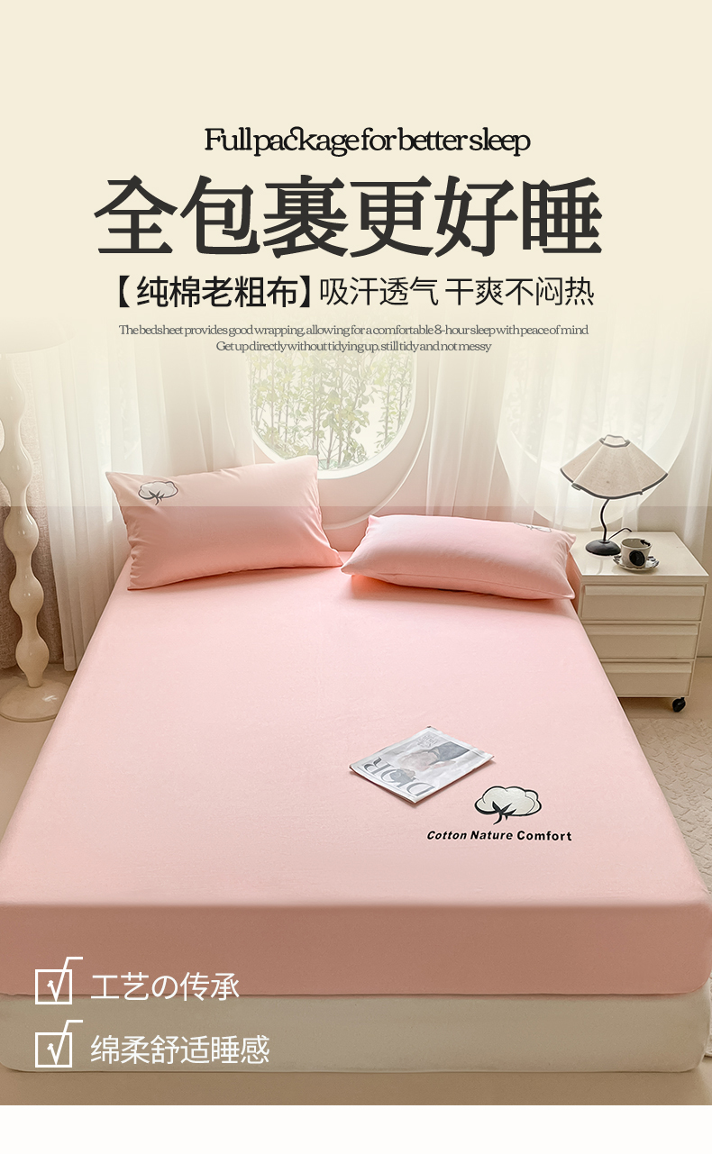 布卢姆床垫 2025新款全棉烫画全棉老粗布床笠 棉朵-珊瑚粉