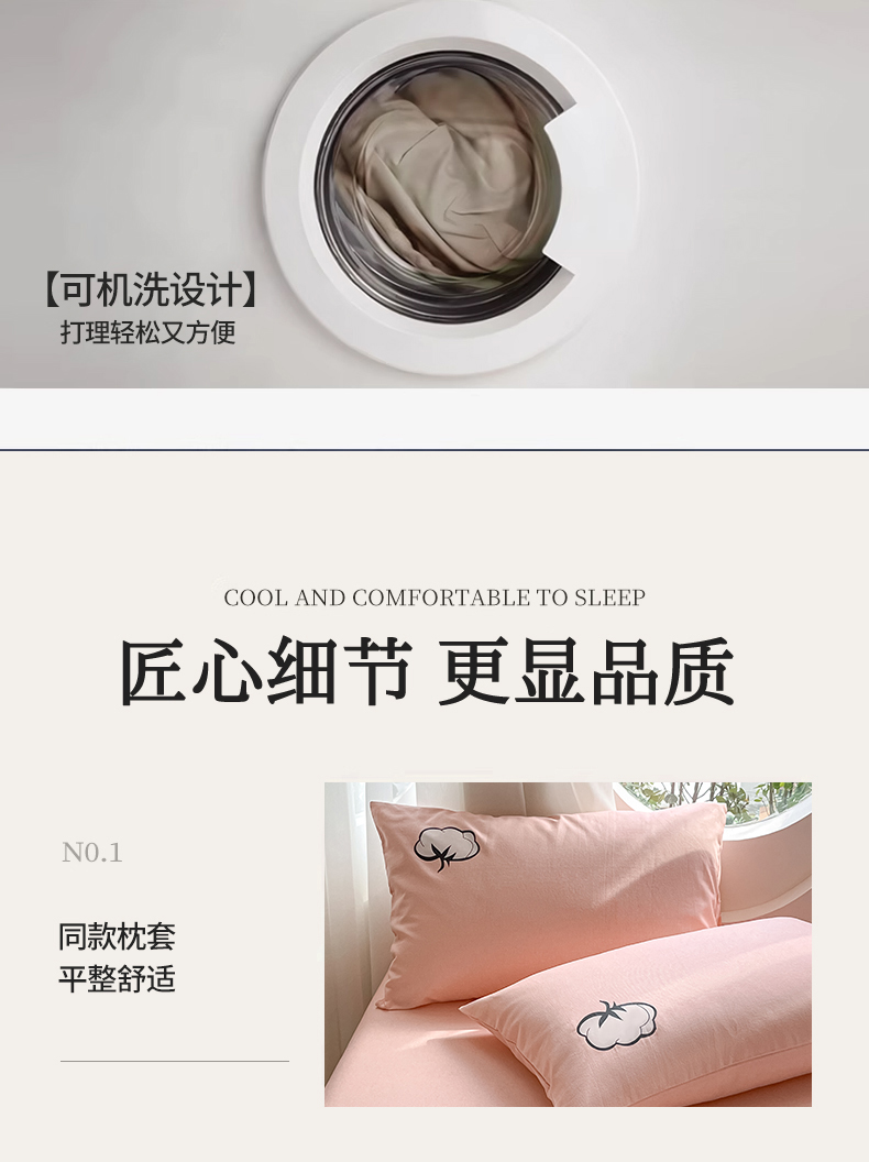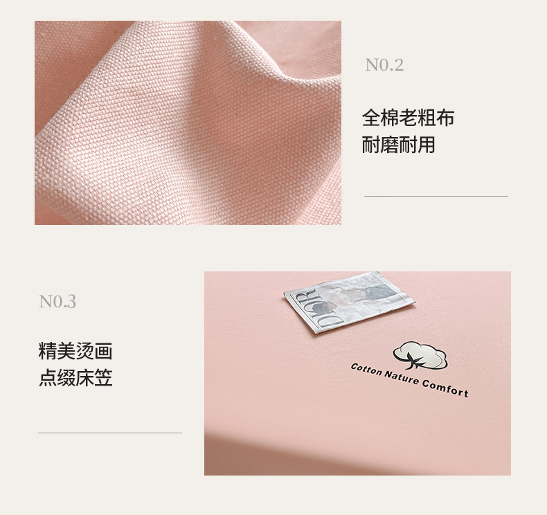 商品名称:布卢姆床垫 2025新款全棉烫画全棉老粗布床笠 棉朵-珊瑚粉
