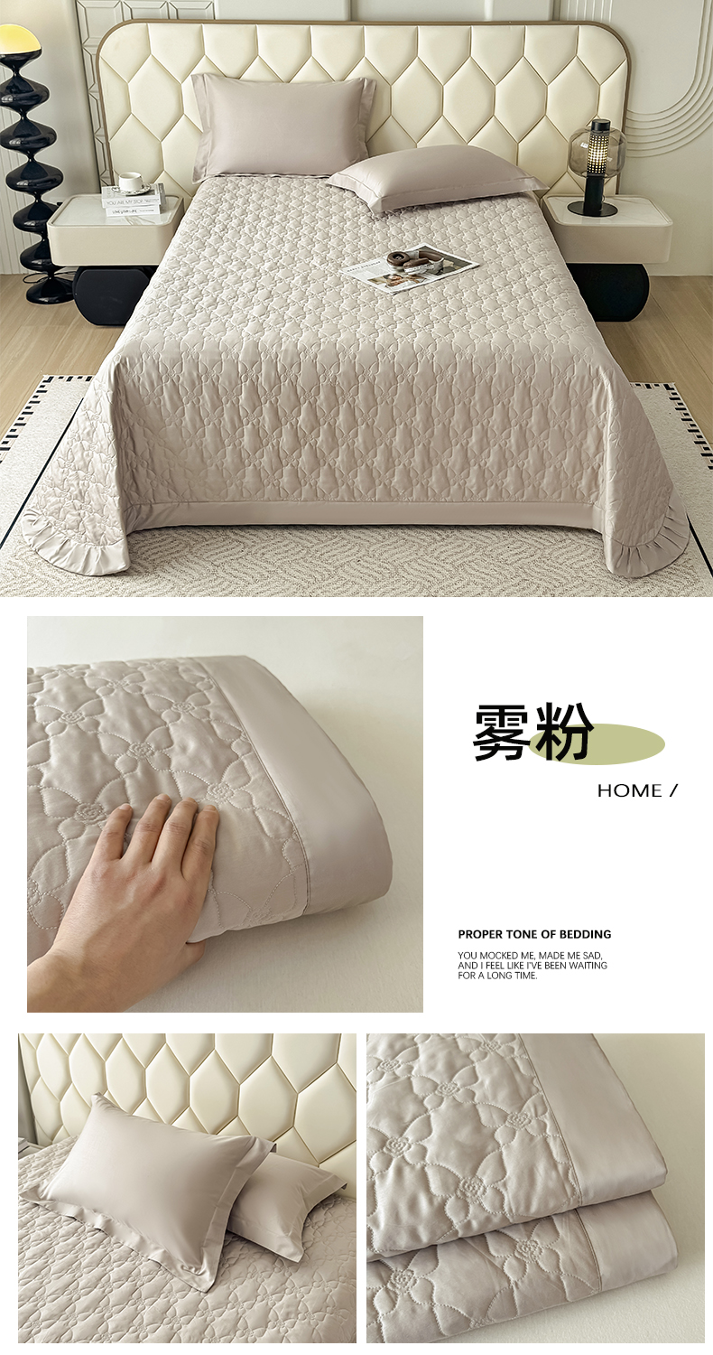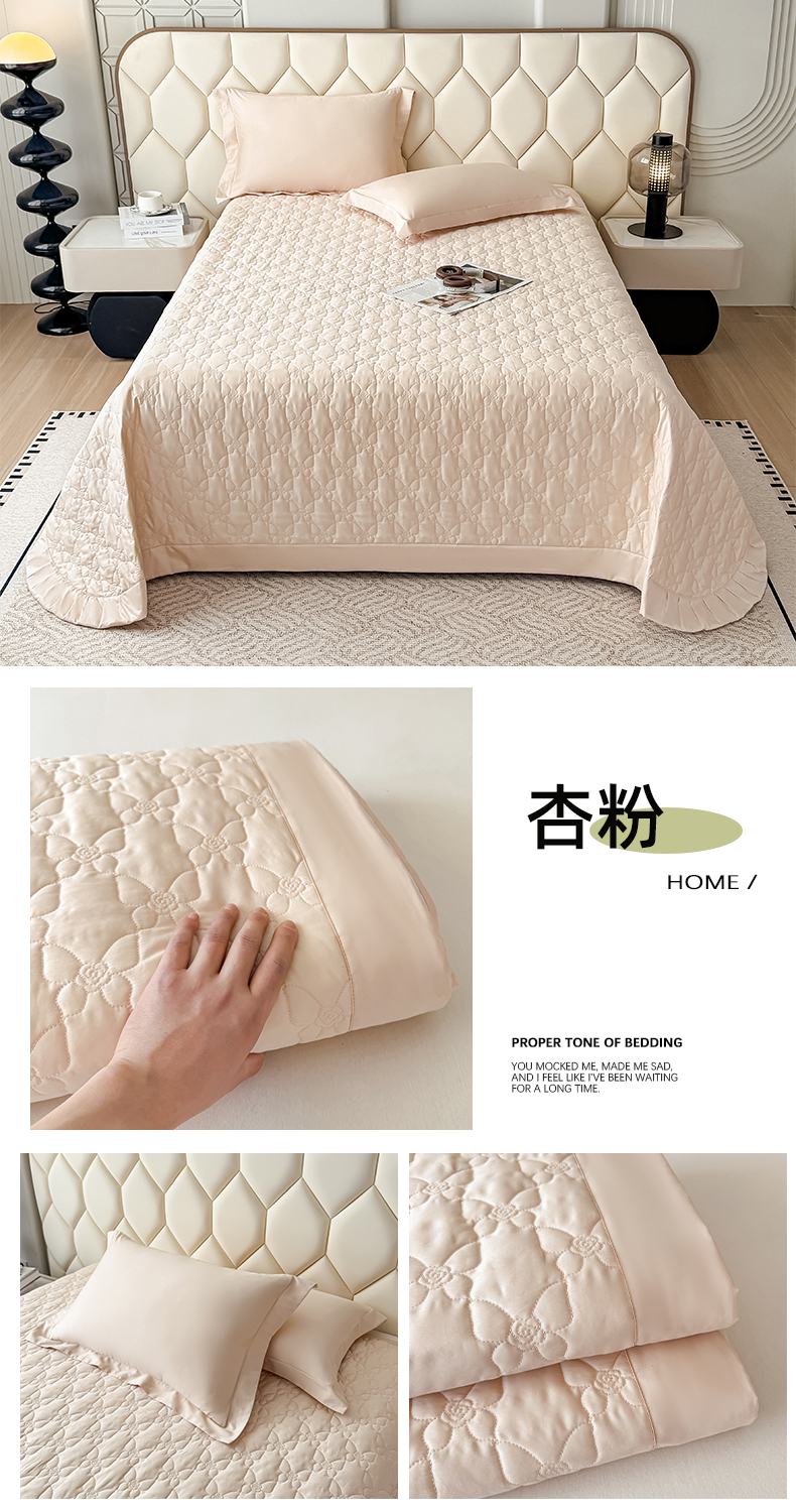 (总)金喜 2024新款100支全棉床盖蚕丝床盖三件套D型绗缝系列,白桃粉,繁花橙,粉雅灰,迷雾金,木槿绿