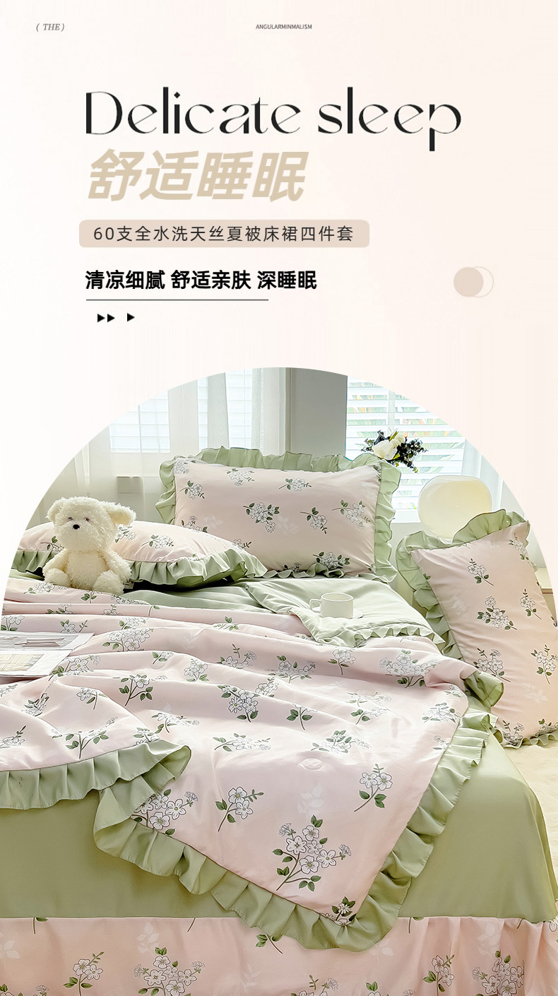 找底底家纺 2025新款60S水洗天丝夏被夏凉被空调被床裙四件套 盛夏