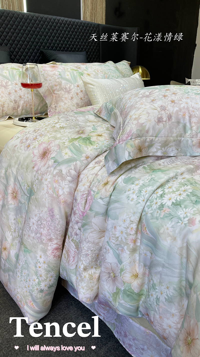 (总)莱豫2025新款50支莱赛尔天丝四件套,布兰奇粉,春风十里,春日落樱,扶光,禾暮粉,花黛米,花岛邮局,花漾情绿,花漾情玉,花影之恋紫,悸川,绿光森林,梦甜粉,茉雅紫,墨竹,浅筏花亦,山茶酿,水墨意境,微梦,雾色玫瑰,寻春色,遇春雪米,紫陌,紫雾