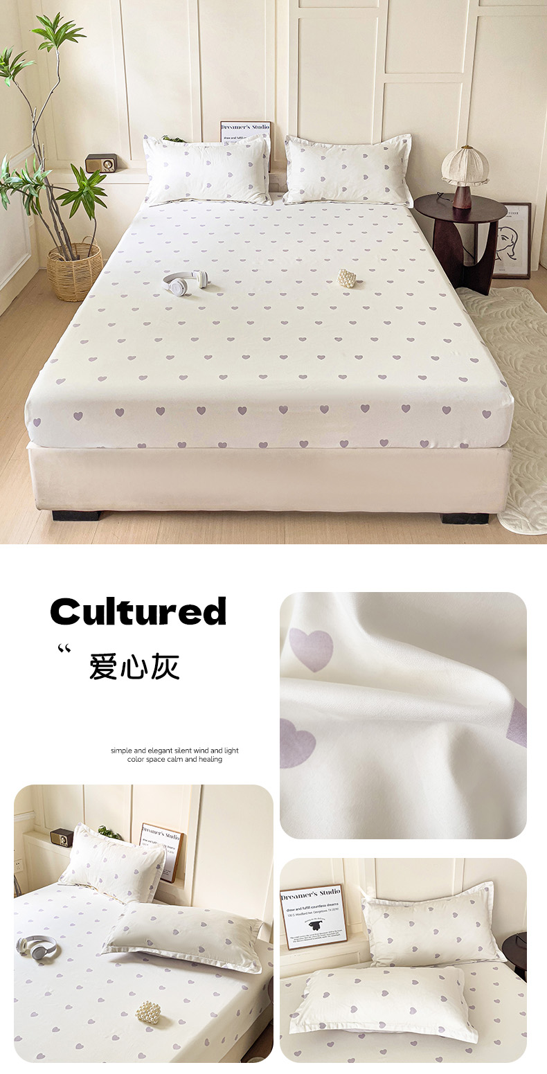 朵朵家纺 2025新款亲肤棉芦荟棉床笠单床笠,磨毛床笠,印花床笠(可定制尺寸 ) 爱心灰
