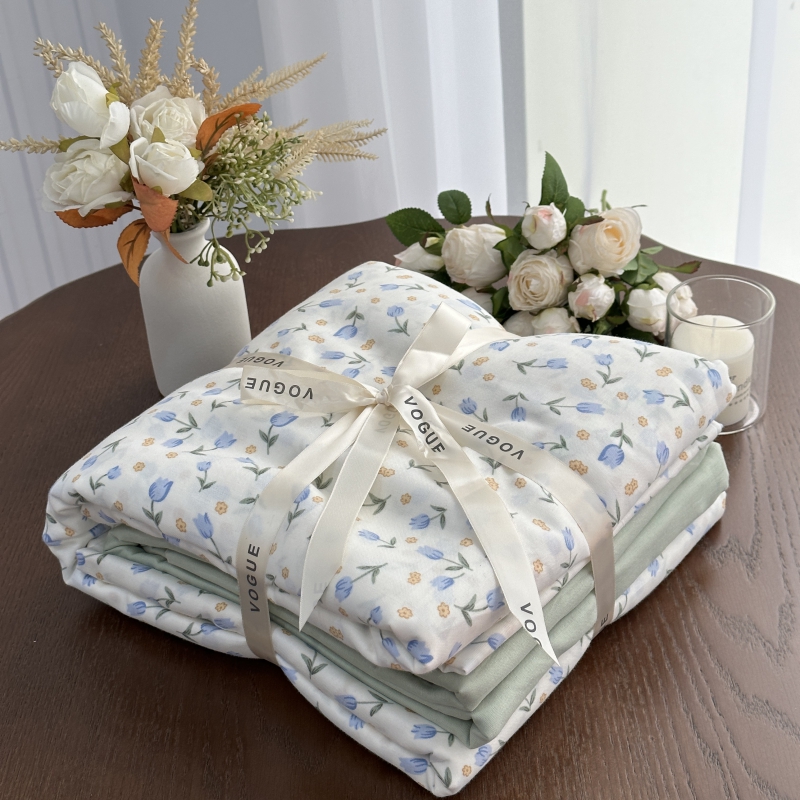 商品名称:黛馨家居2025新款全棉A类小清新双层纱四件套-系列二 浅浅