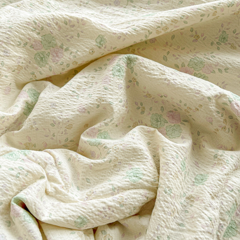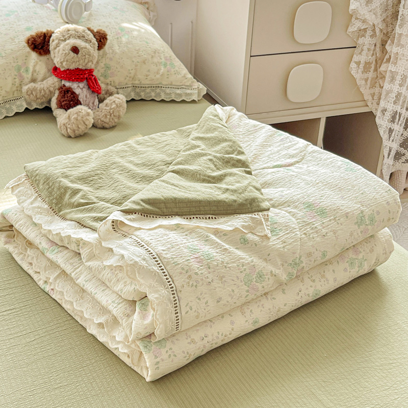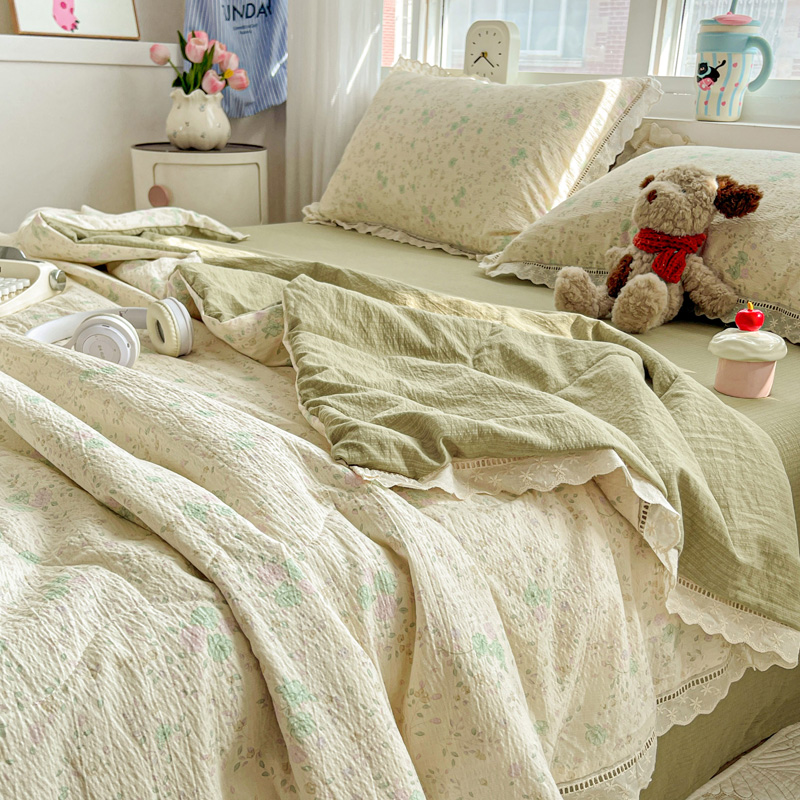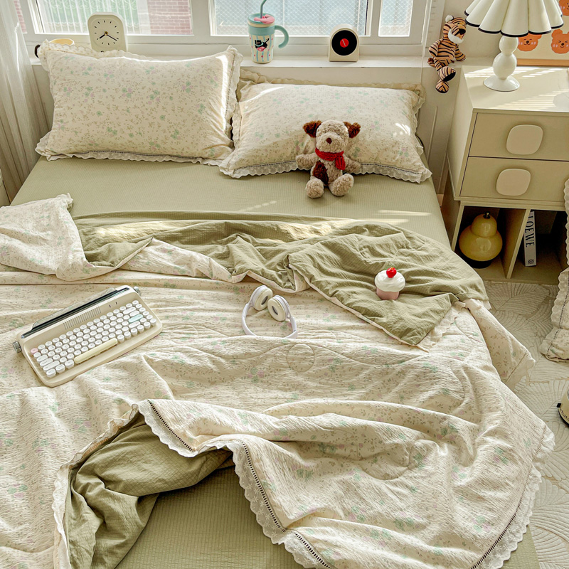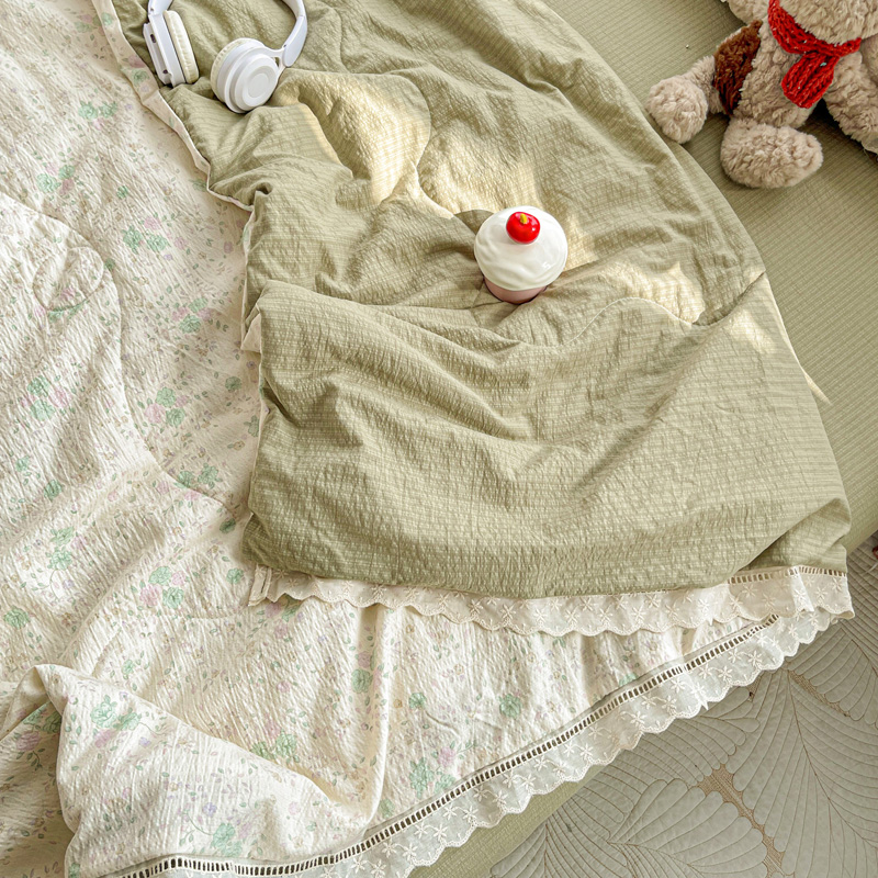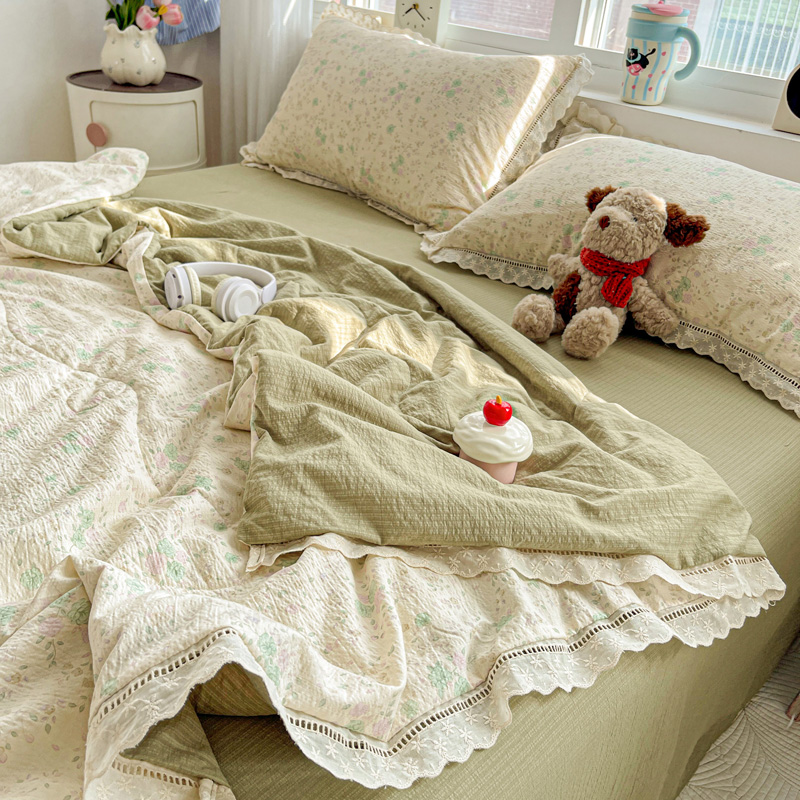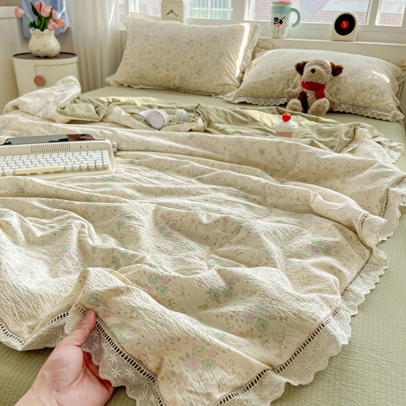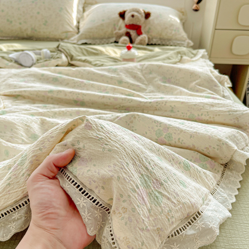 2025新款云感皱皱纱全棉花边款夏被四件套 微凉薄荷