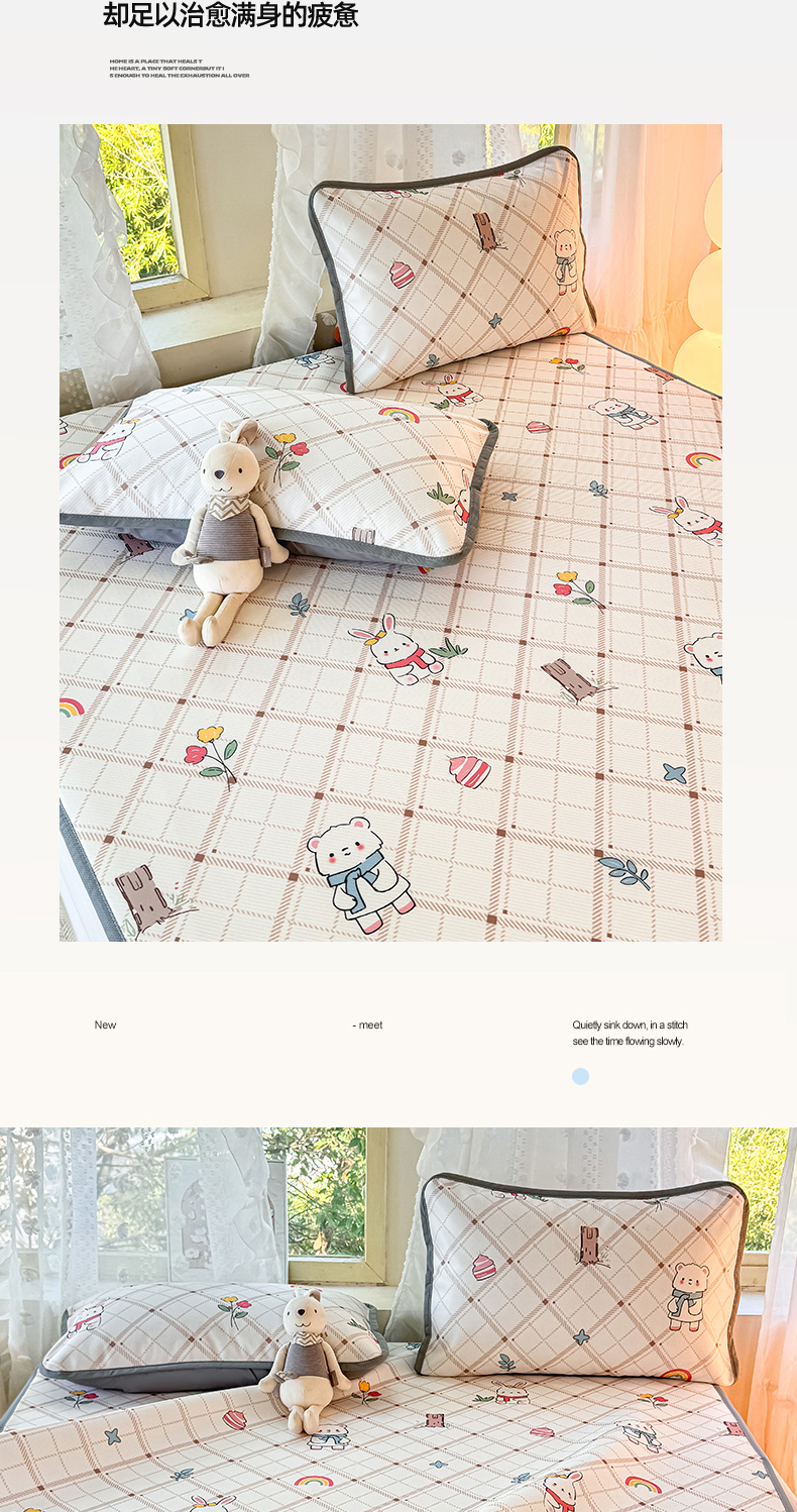 (总)慕梵家居 2025新款冰豆豆斜纹数码印花床单款凉席席子三件套