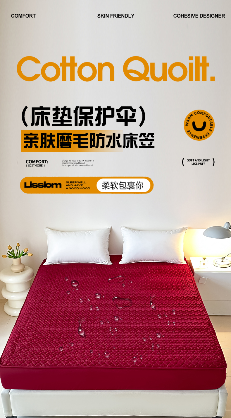 • 91家纺网 家纺一手货源 找家纺 茗婷家纺 2025新款夹棉防水单床笠供外贸跨境亚马逊 深蓝夹棉