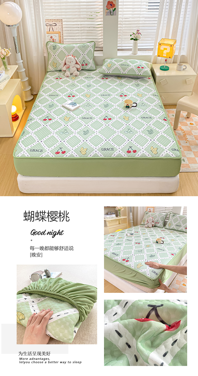 • 91家纺网 家纺一手货源 找家纺 慕梵家居 2025新款冰豆豆数码印花圆网凉席款凉席席子三件套 蝴蝶樱桃