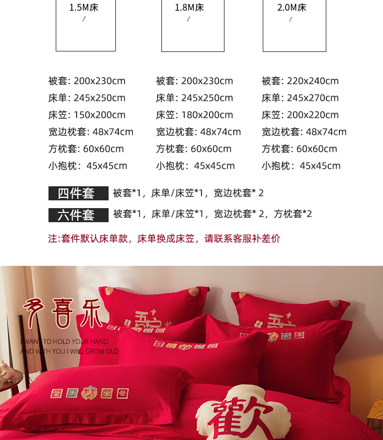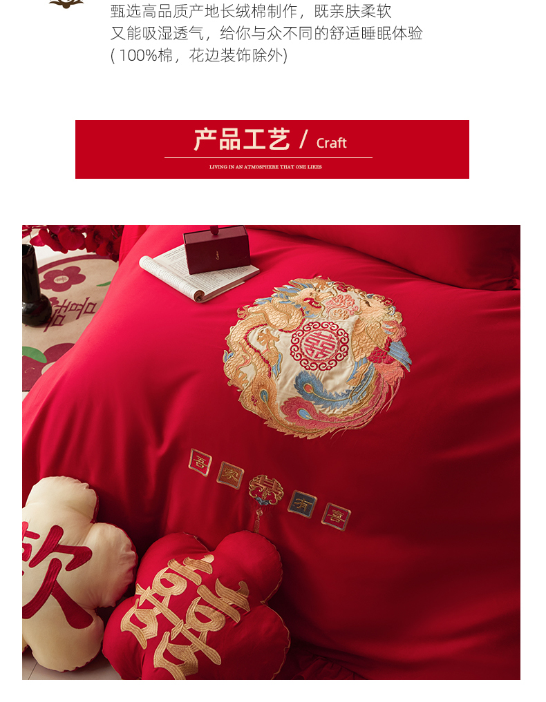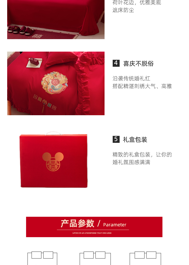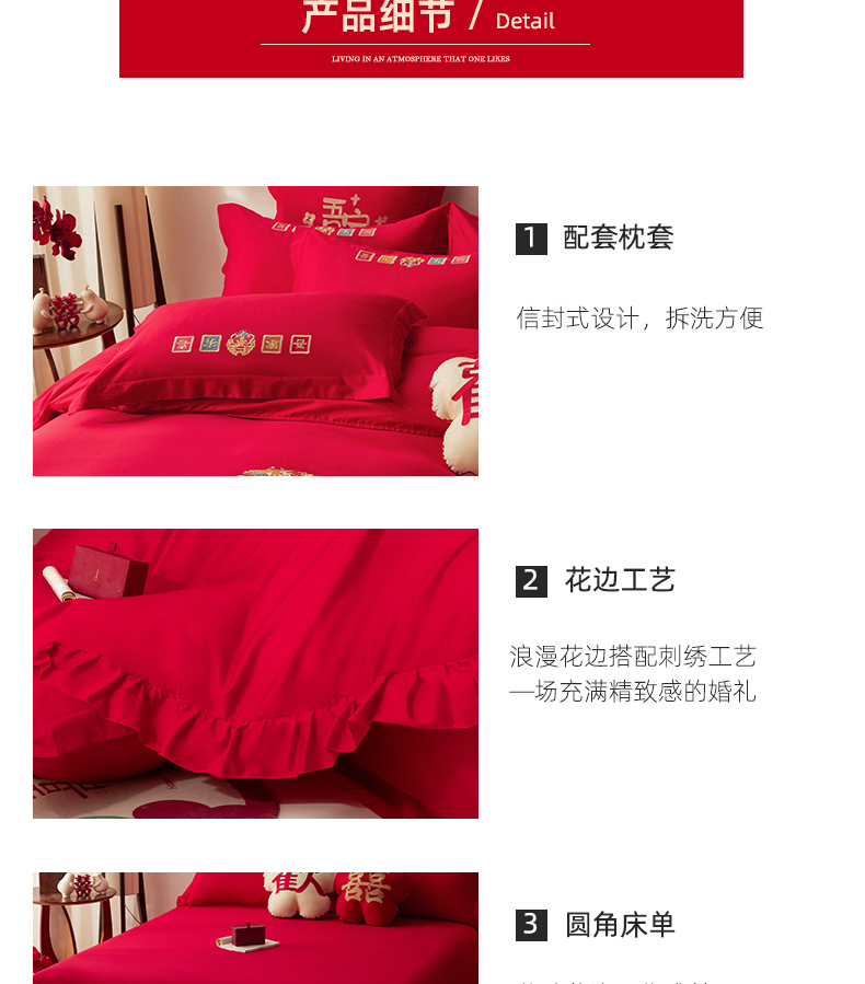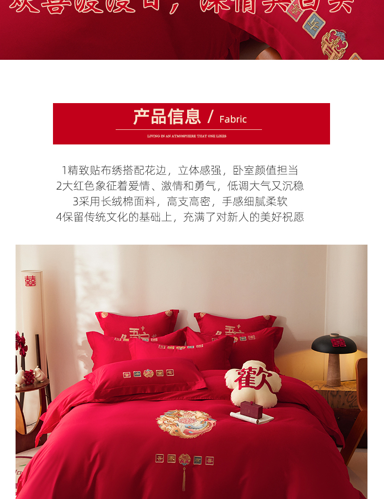 当前位置: 91家纺网 > 商品网购 > 床品套件 > 四件套 > 长绒棉四件套 > 玉雅家纺 2025新款长绒棉花边款刺绣时尚婚庆四件套 花边款-今世缘
