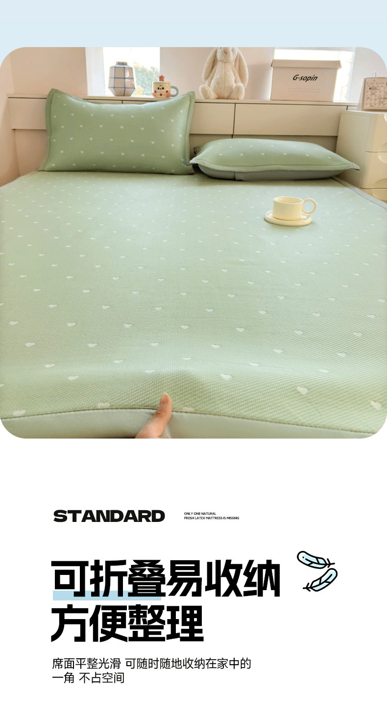 (总)凉百百 2024新款凉豆豆乳胶凉席冰丝席直播电商优选,蓝,粉,灰,绿