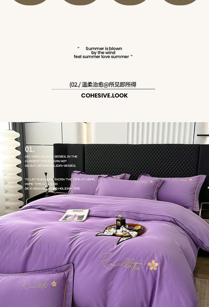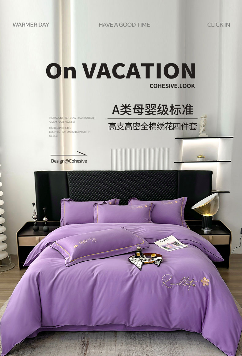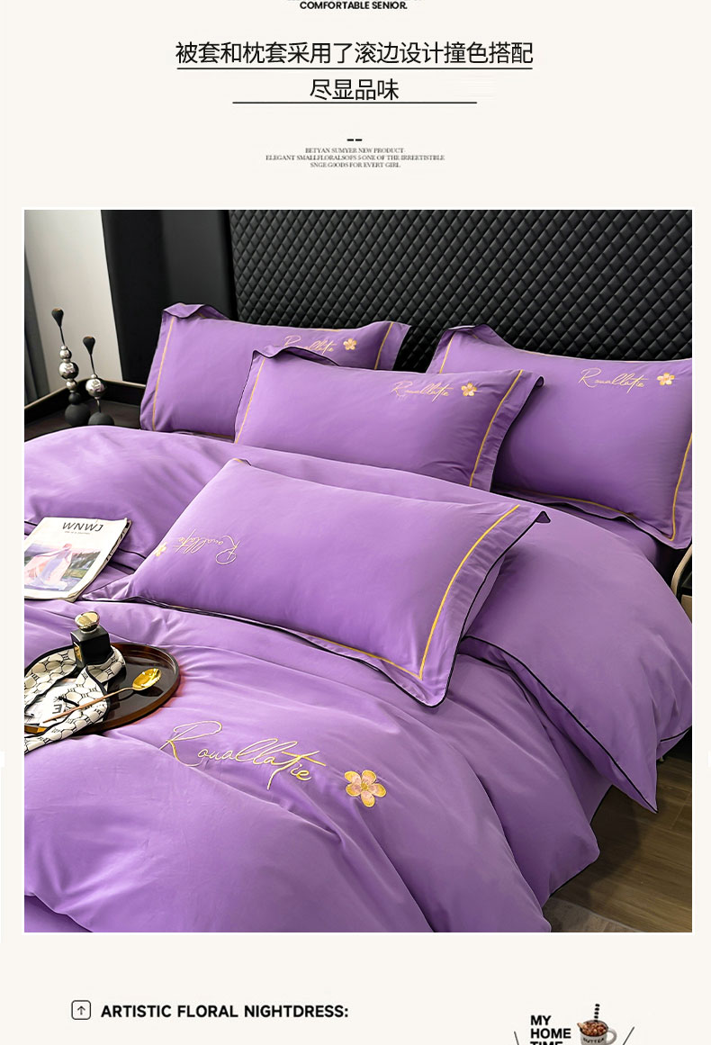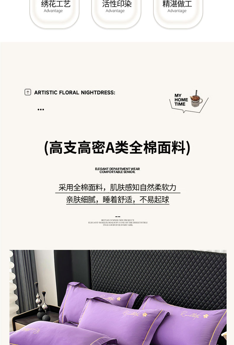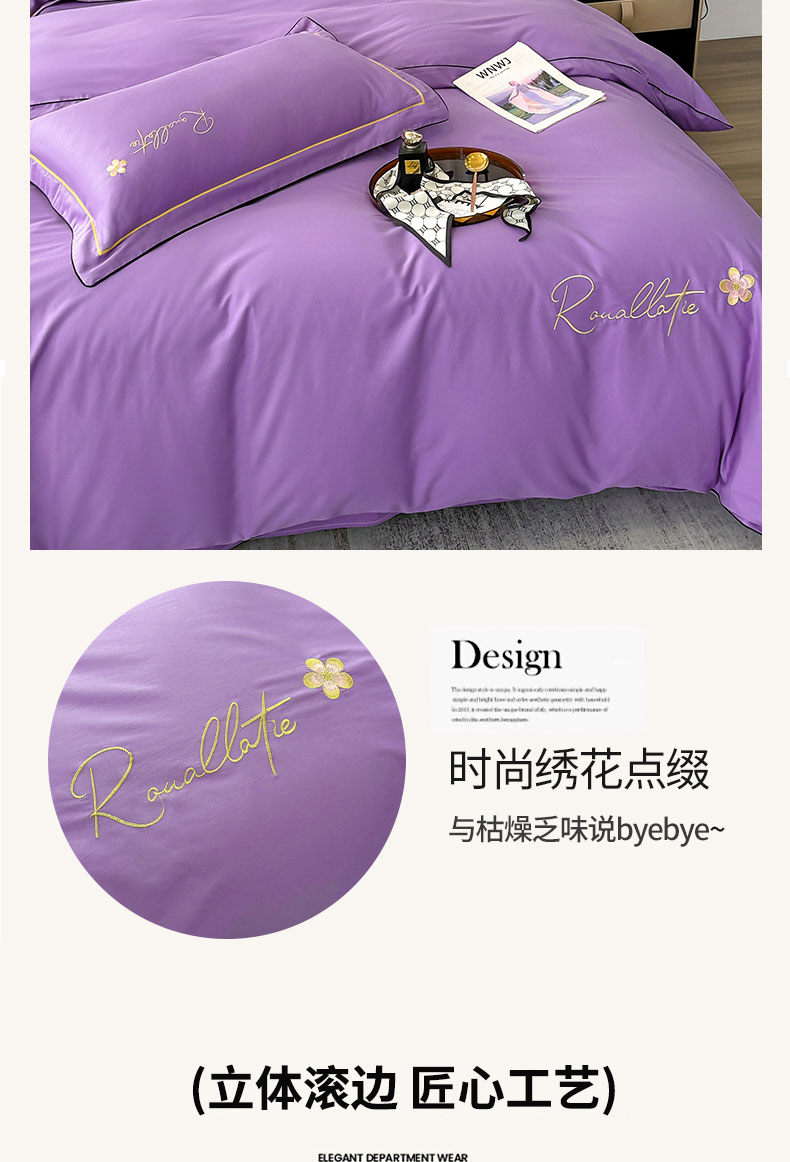 当前位置: 91家纺网 > 商品网购 > 床品套件 > 四件套 > 全棉普通四件套 > 宇彬家纺 2025新款13374全棉母婴级压线一字绣宽边枕套纯色刺绣四件套贡缎新疆长绒字母款-R款 R款-曲雅紫