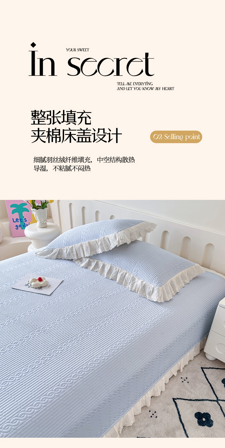 (总)岚吉家纺 2025新款全棉绗缝棉花床盖花边款三件套四件套,缤纷樱桃,草莓格子,花边兔,黄苏条,蓝美人,落落晨光,萌萌狮,蘑菇狗,秋日玫瑰,兔菲菲,向晚,小黑点点(米),游花间