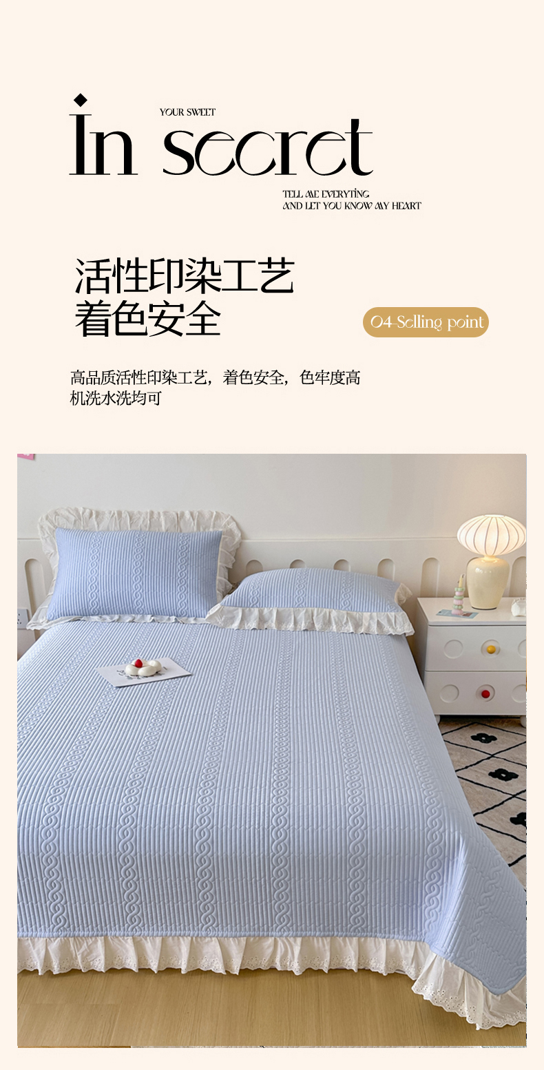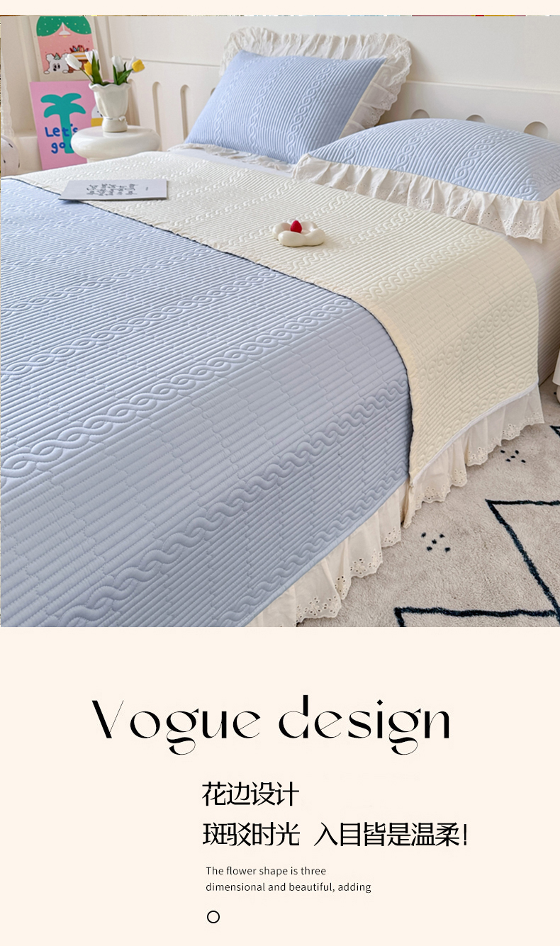 • 91家纺网 家纺一手货源 找家纺 (总)岚吉 2025新款莫代尔纯色小花边床盖三件套,白桃粉,海风蓝,皓月黄,奶油绿,天青色,珍珠灰