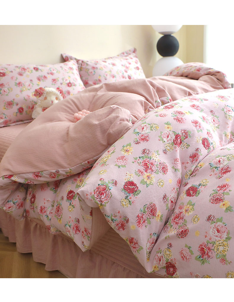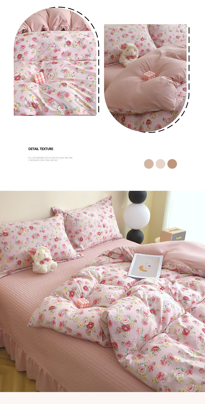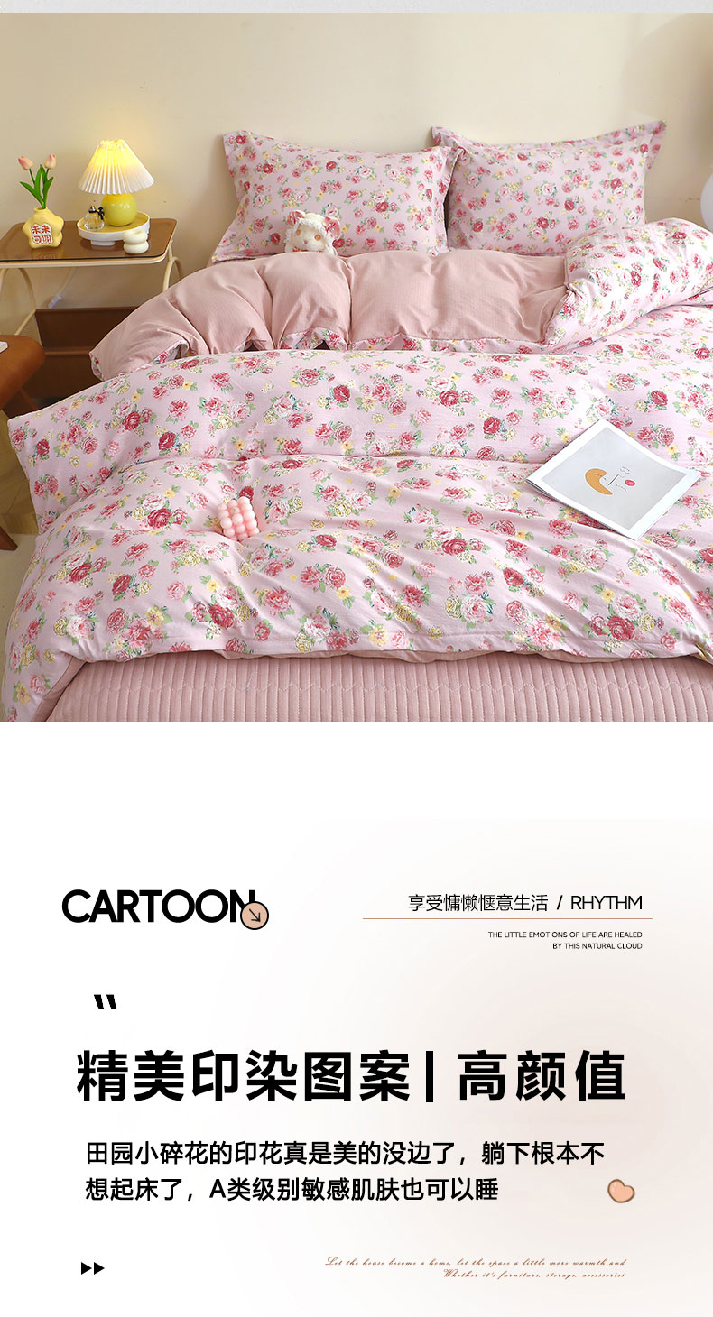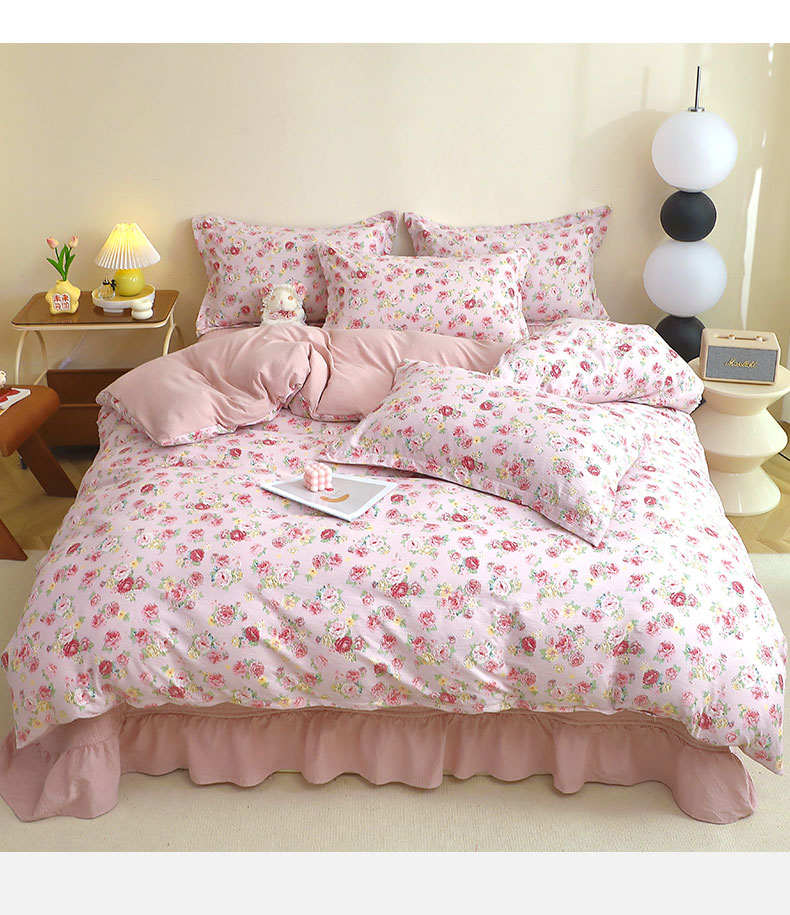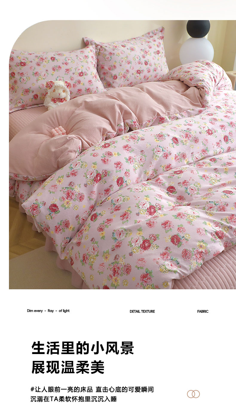 人人爱家纺 2025新款皱皱纱床盖四件套 玫瑰花园-红