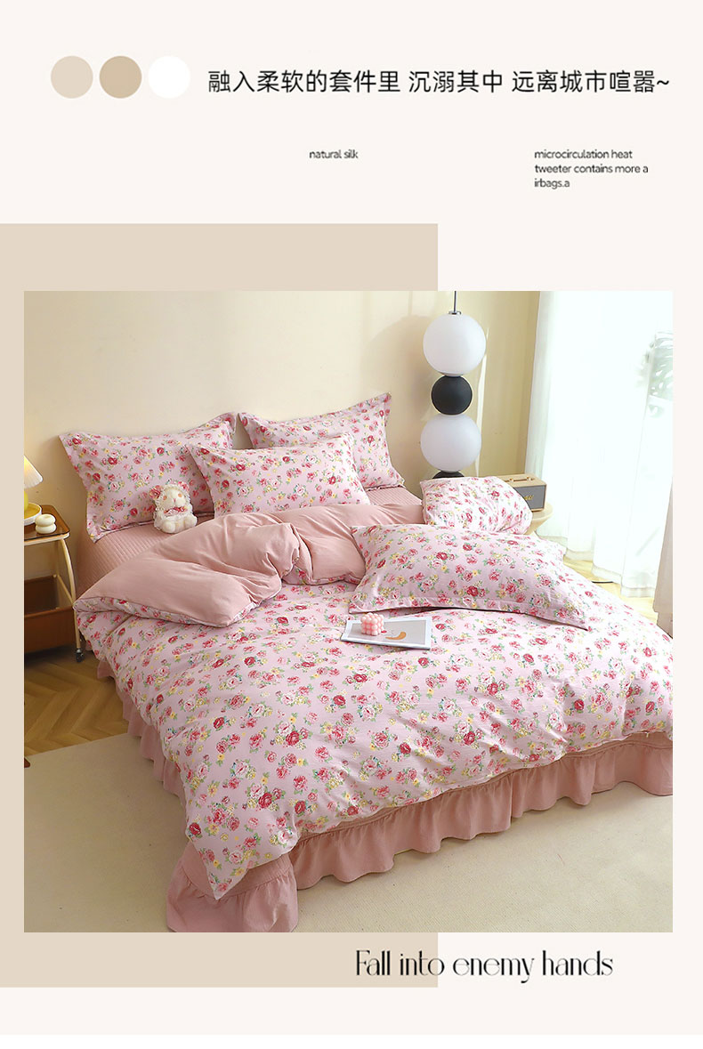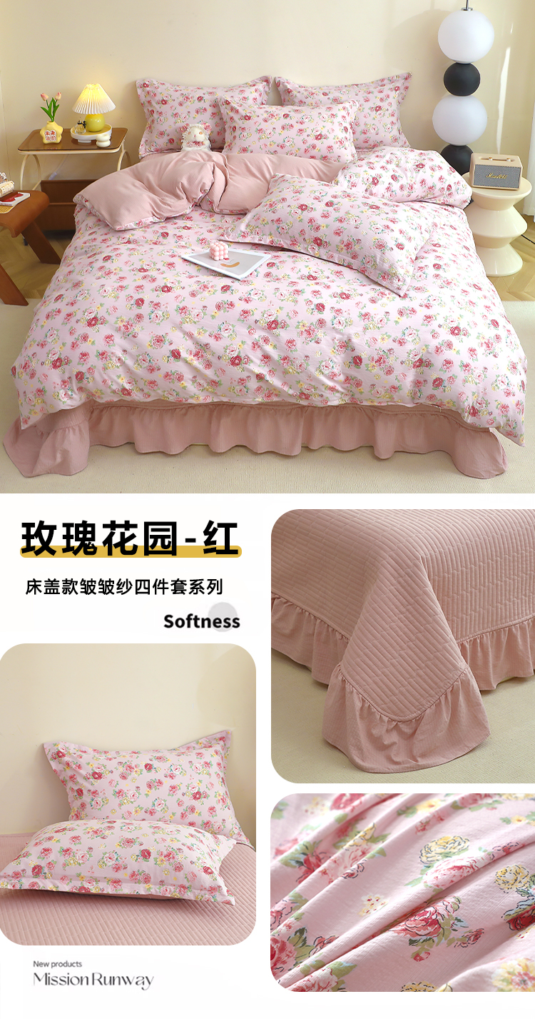 商品名称:人人爱家纺 2025新款皱皱纱床盖四件套 玫瑰花园-红