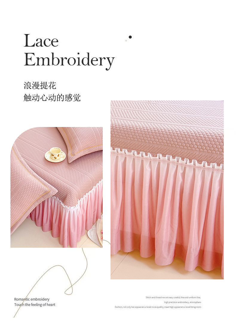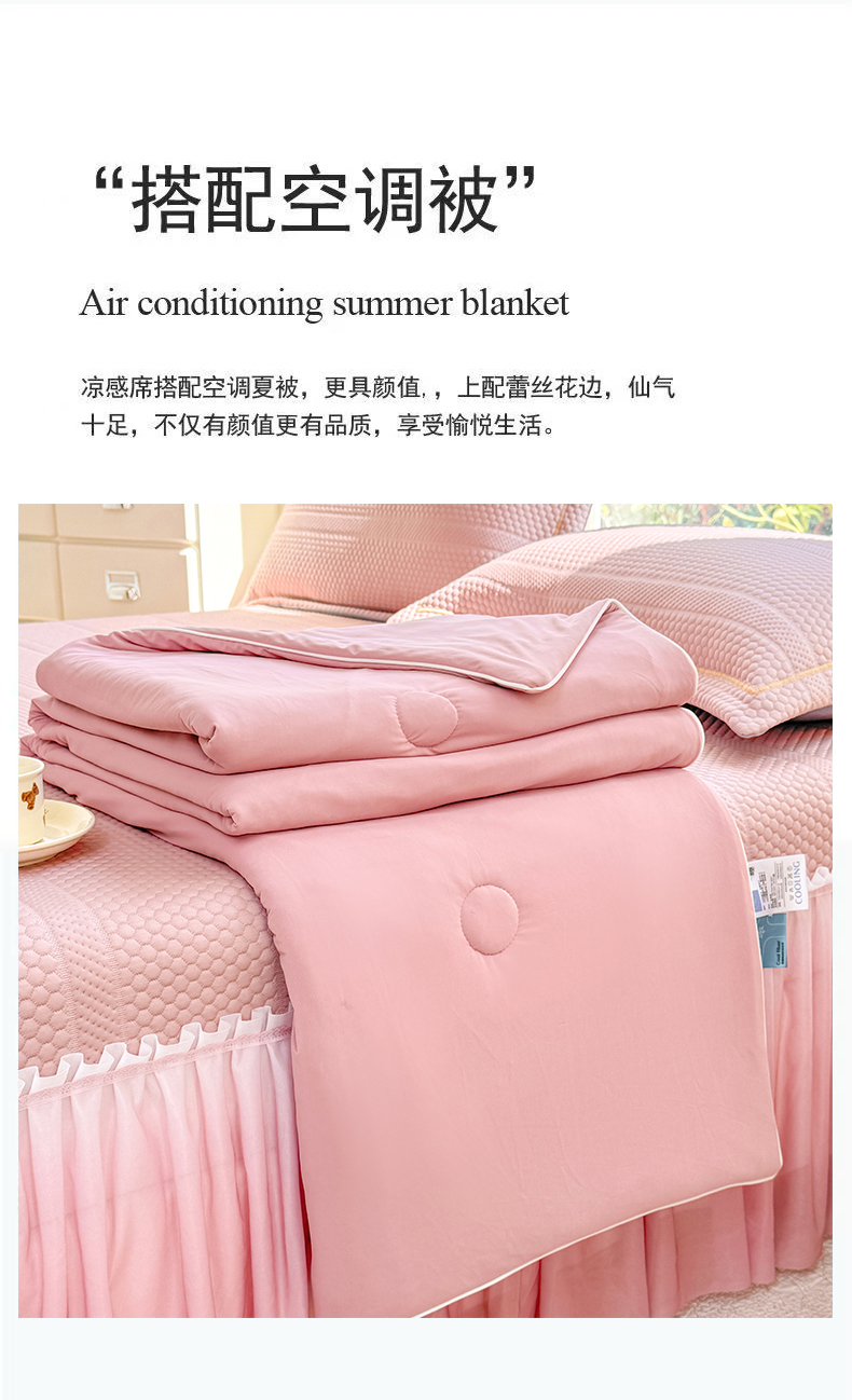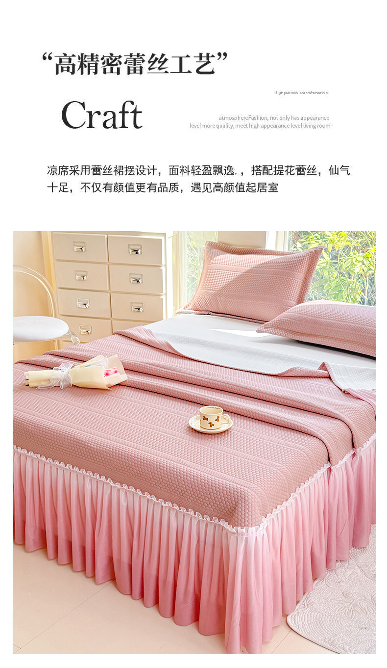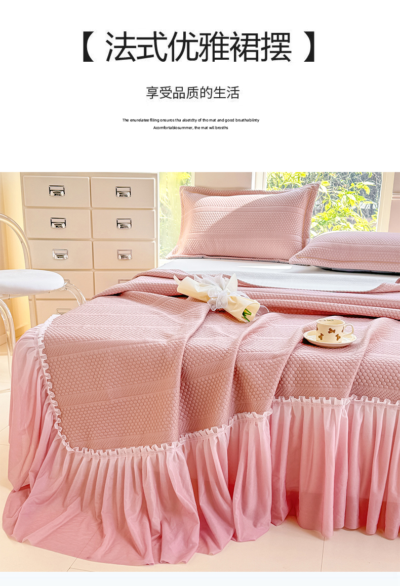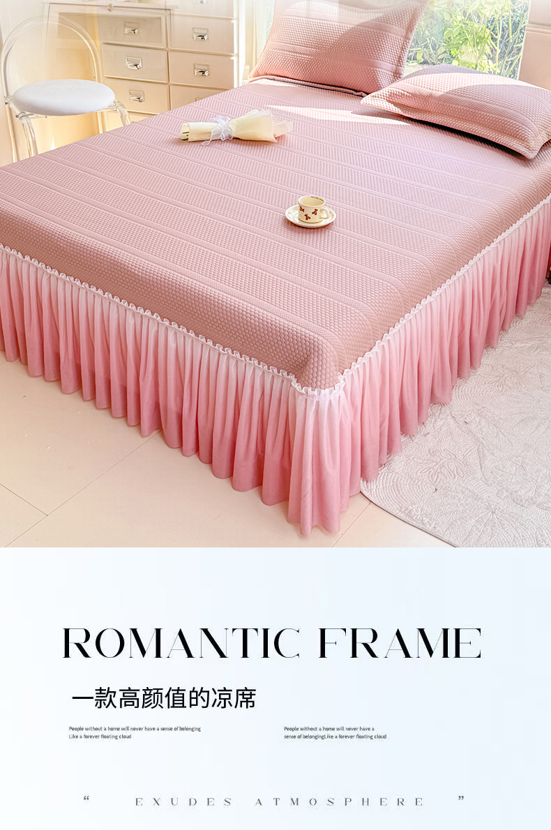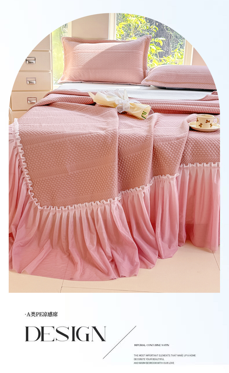 慧菲 2025新款渐变床裙PE高分子凉感席床裙凉席三件套 少女粉,少女粉
