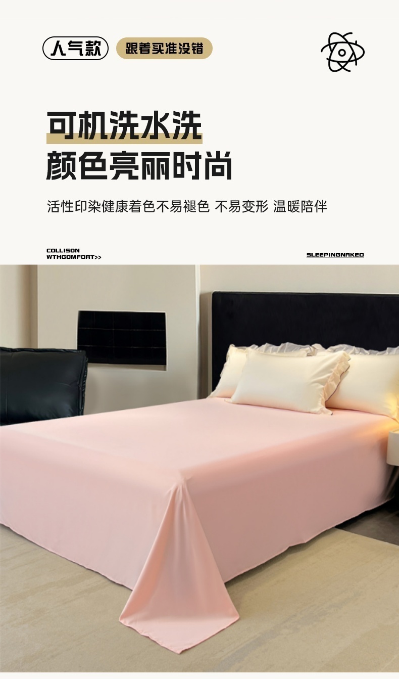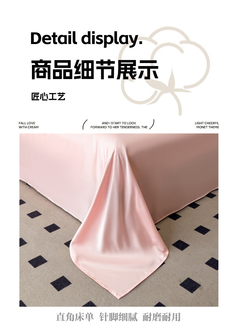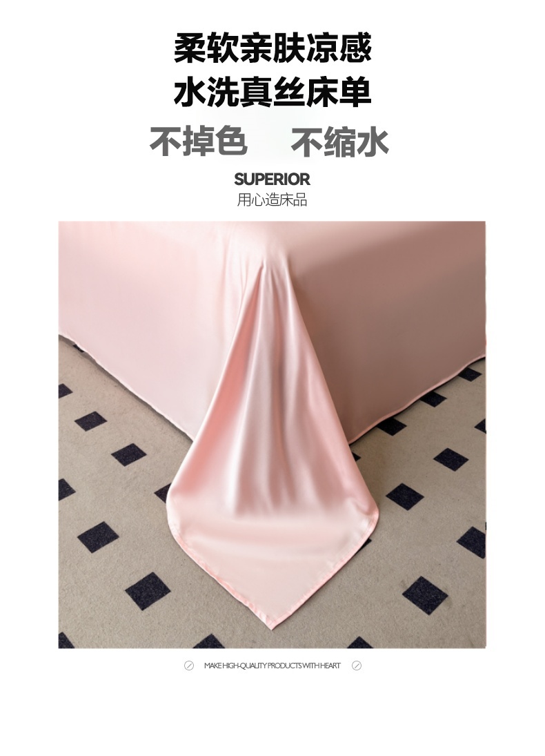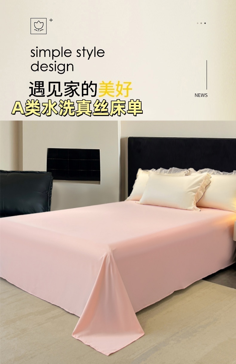商品名称:圣比熊 2025新款水洗真丝床单冰丝凉感宿舍被单三件套 奶油浅粉