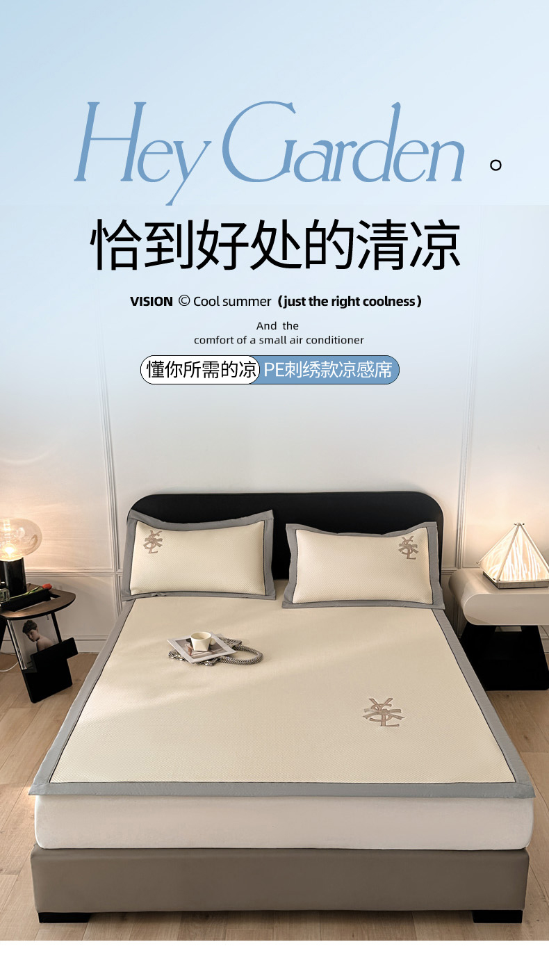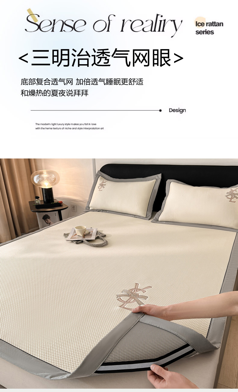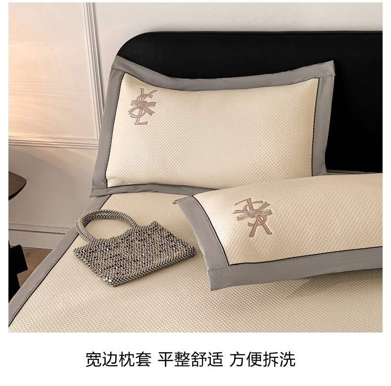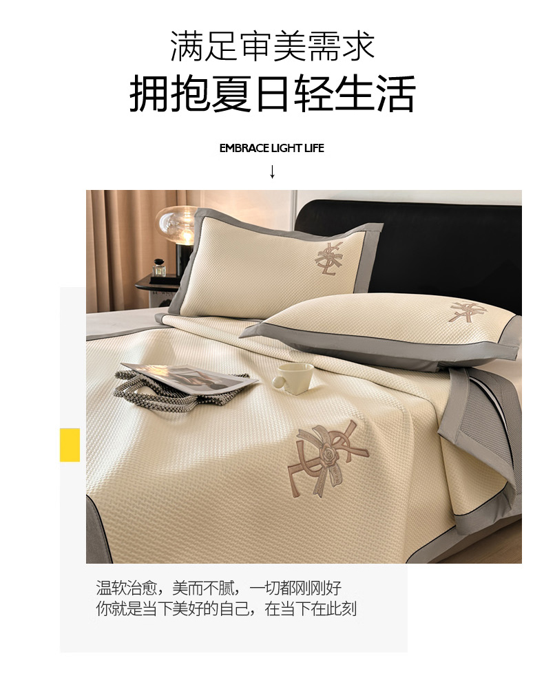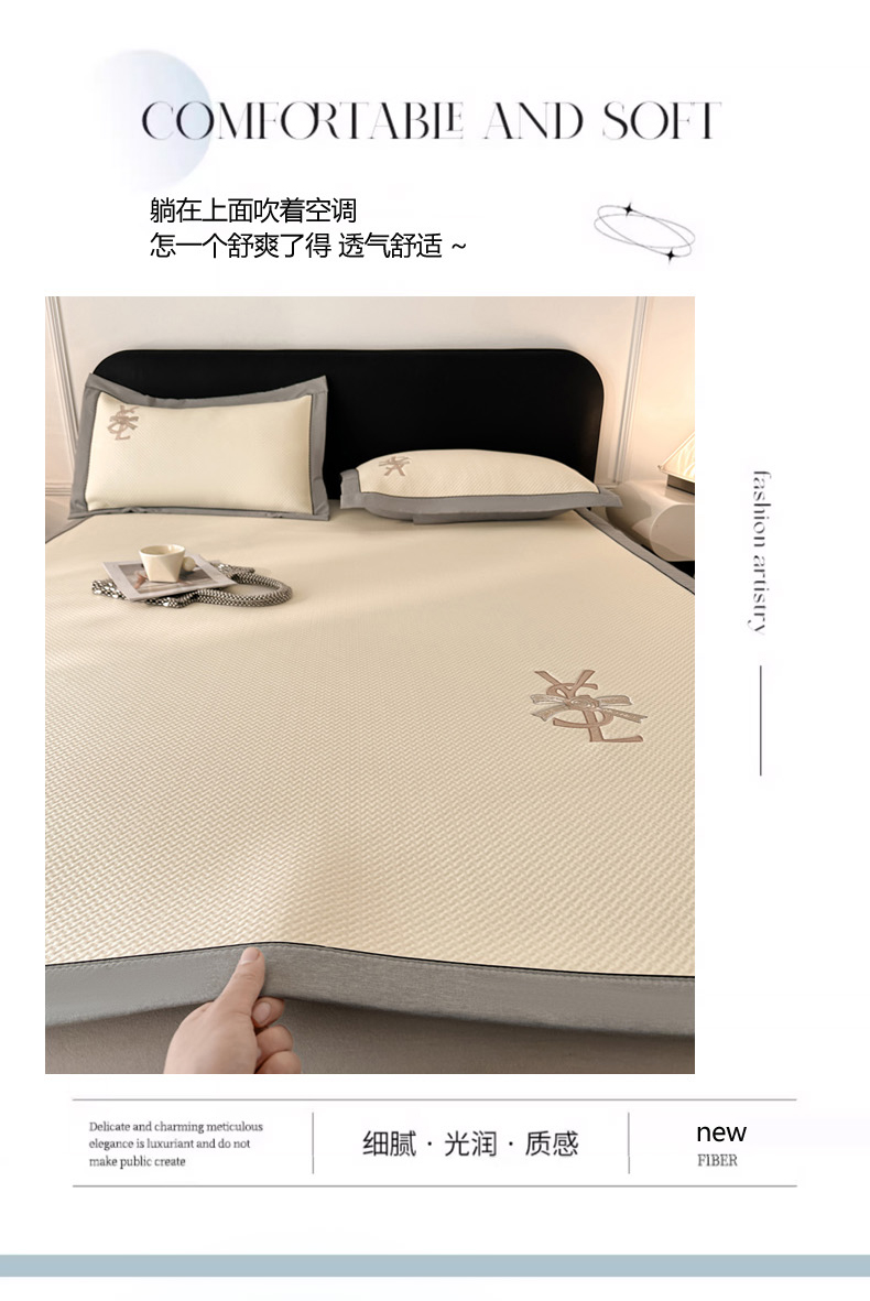 慕尚家纺 2025新款PE刺绣款minmin&ysl凉感席席子凉席 ysl席 米白