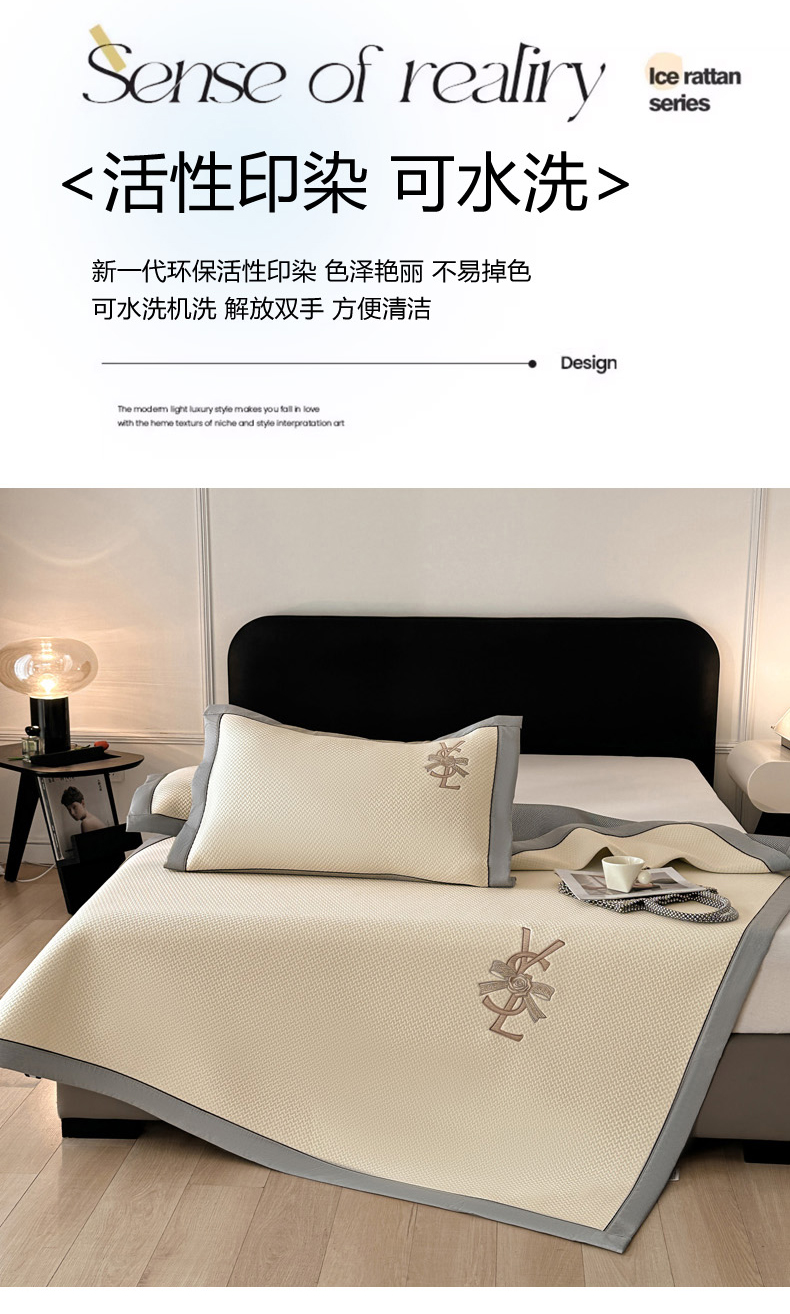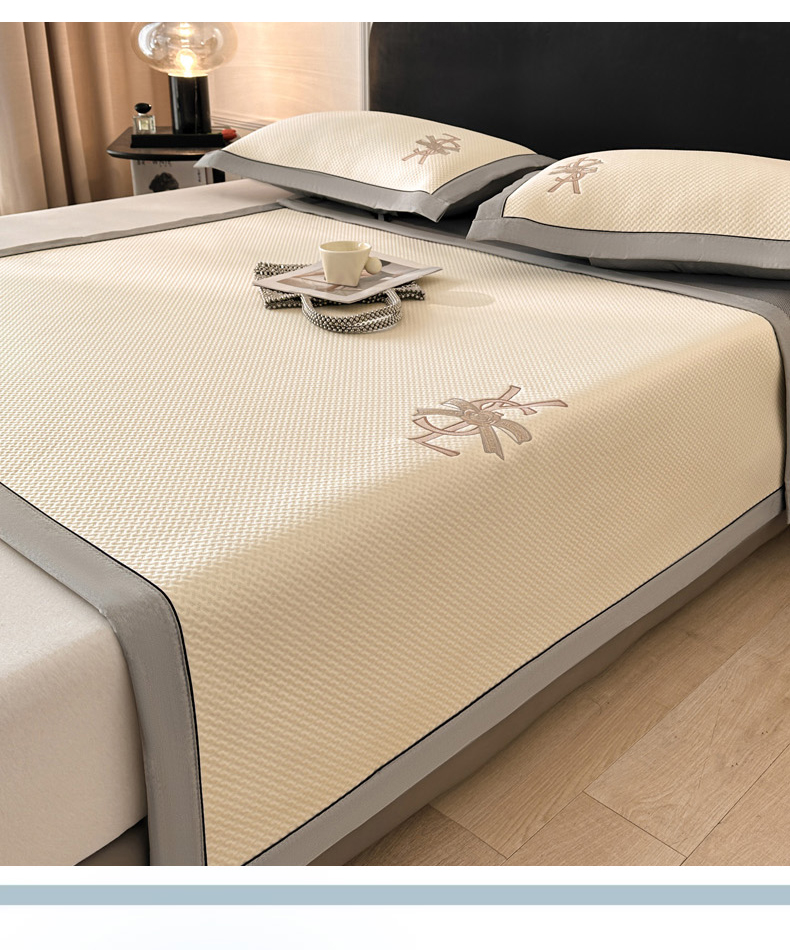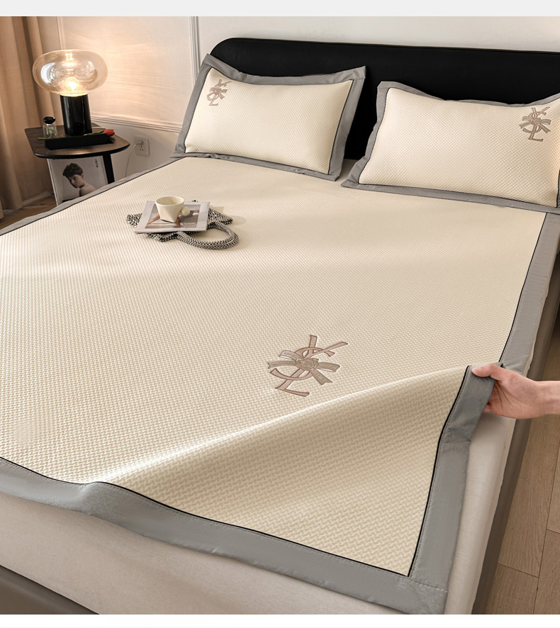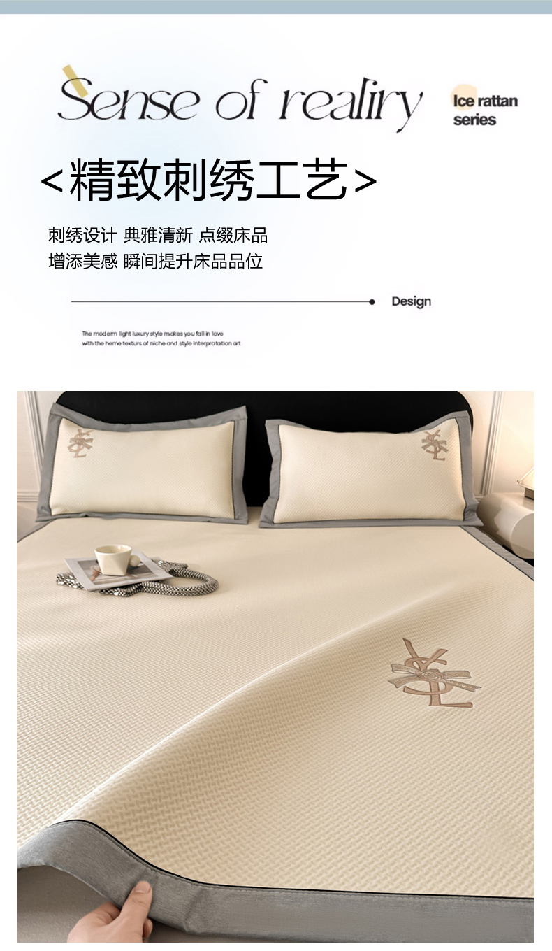 慕尚家纺 2025新款PE刺绣款minmin&ysl凉感席席子凉席 ysl席 米白