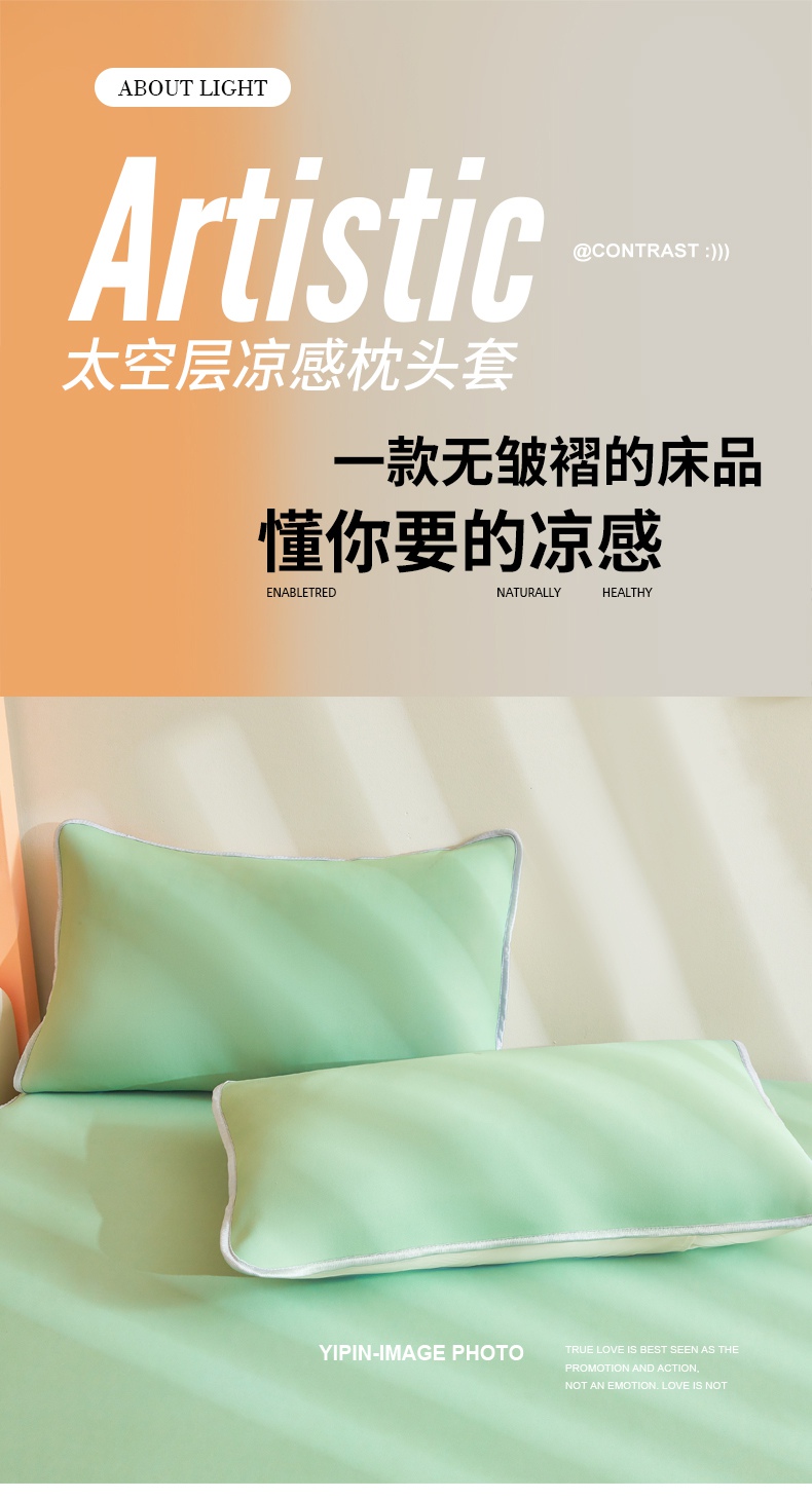 商品名称:LIFE.丽芙 2025春夏新款独家研发太空层凉感冰丝枕头套素色包边款 牛油果绿