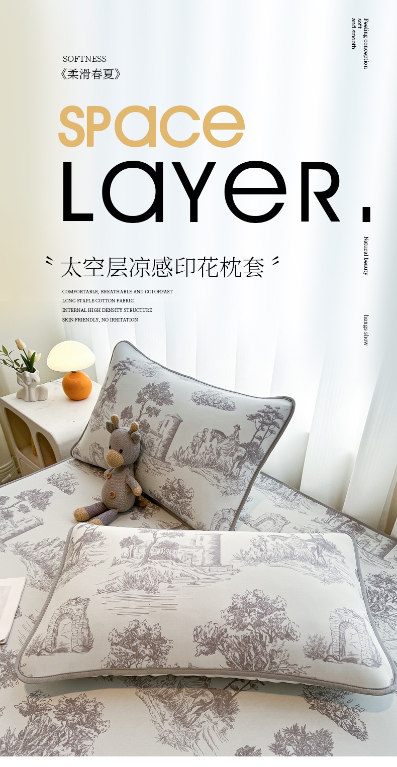 商品名称:LIFE.丽芙 2025春夏新款独家研发太空层凉感冰丝枕头套印花包边款 秘密庄园