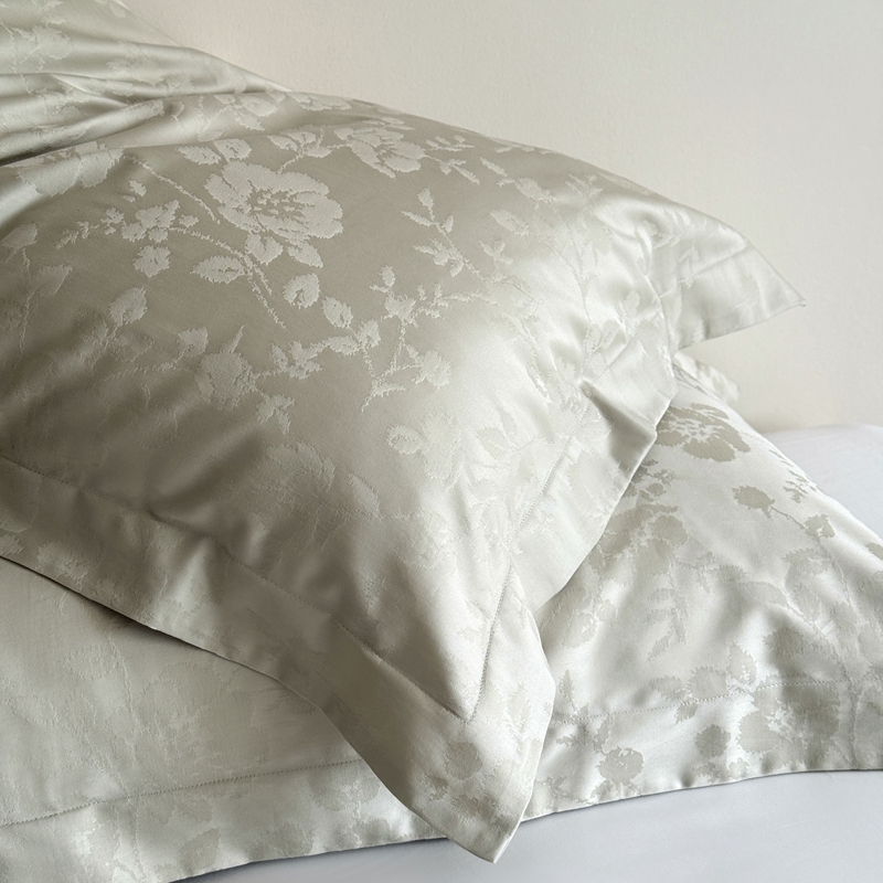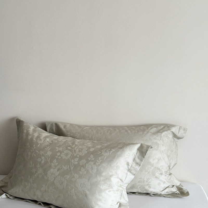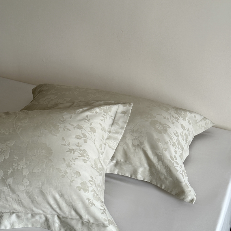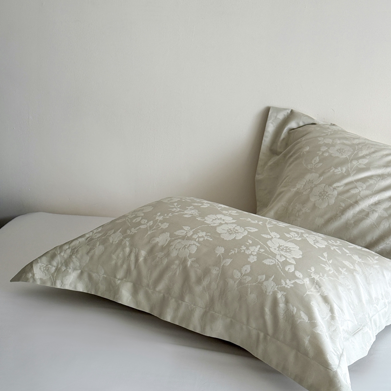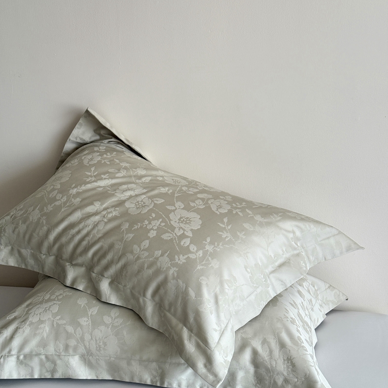 商品名称:鹿班家居 2025年新品100S长绒棉提花单品枕套系列(第一组)【标准会员-2元】 单品枕套-花岛与海香槟绿