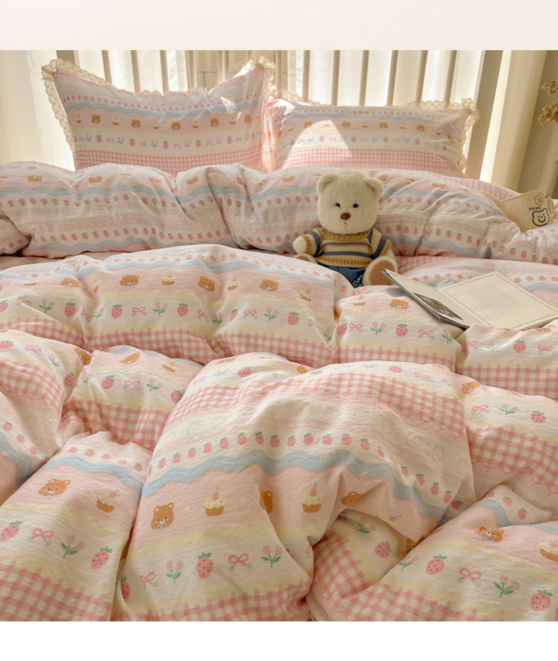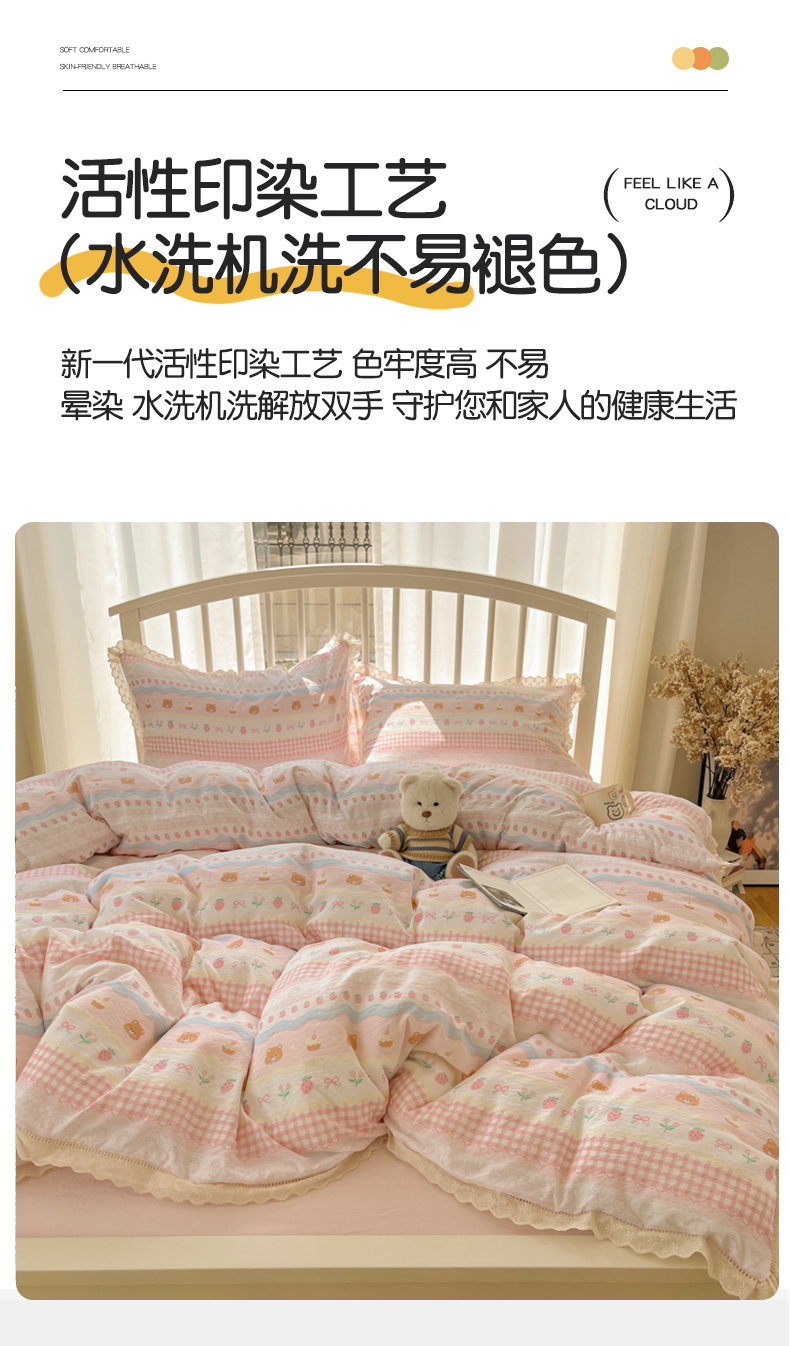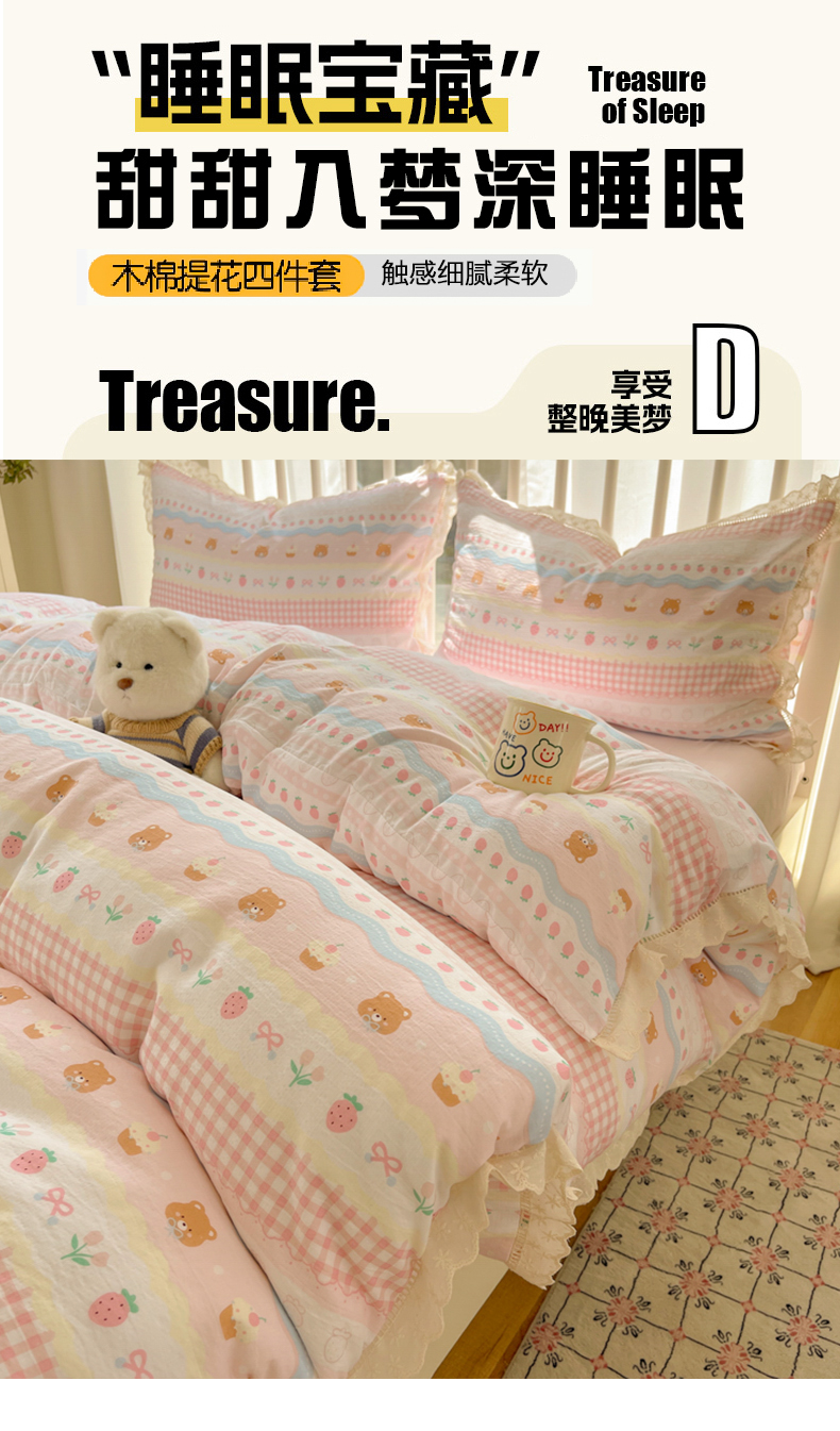 当前位置: 91家纺网 > 商品网购 > 床品套件 > 四件套 > 其它四件套 > 繁花家居 2025新款镂空白色花边直播热款四件套 软萌草莓熊