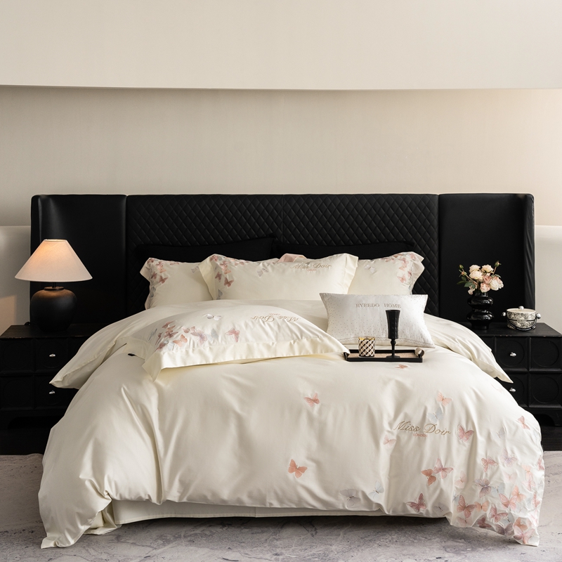 馨蕊2025新款高精密刺绣轻奢风全棉四件套-微光 微光-月光白