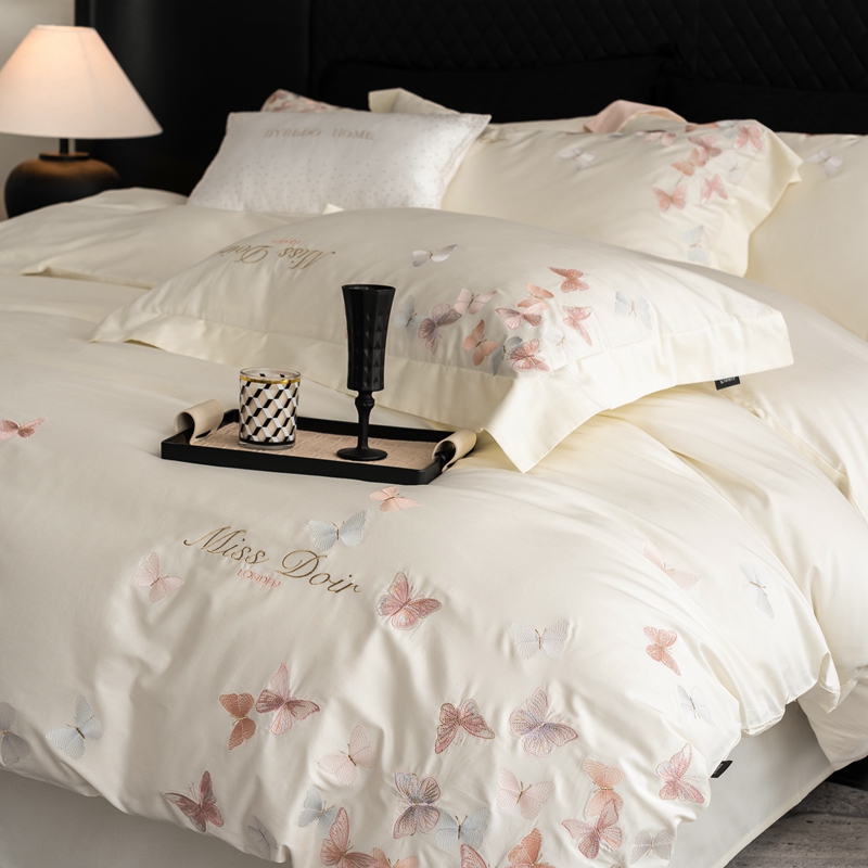 商品名称:馨蕊2025新款高精密刺绣轻奢风全棉四件套-微光 微光-月光白