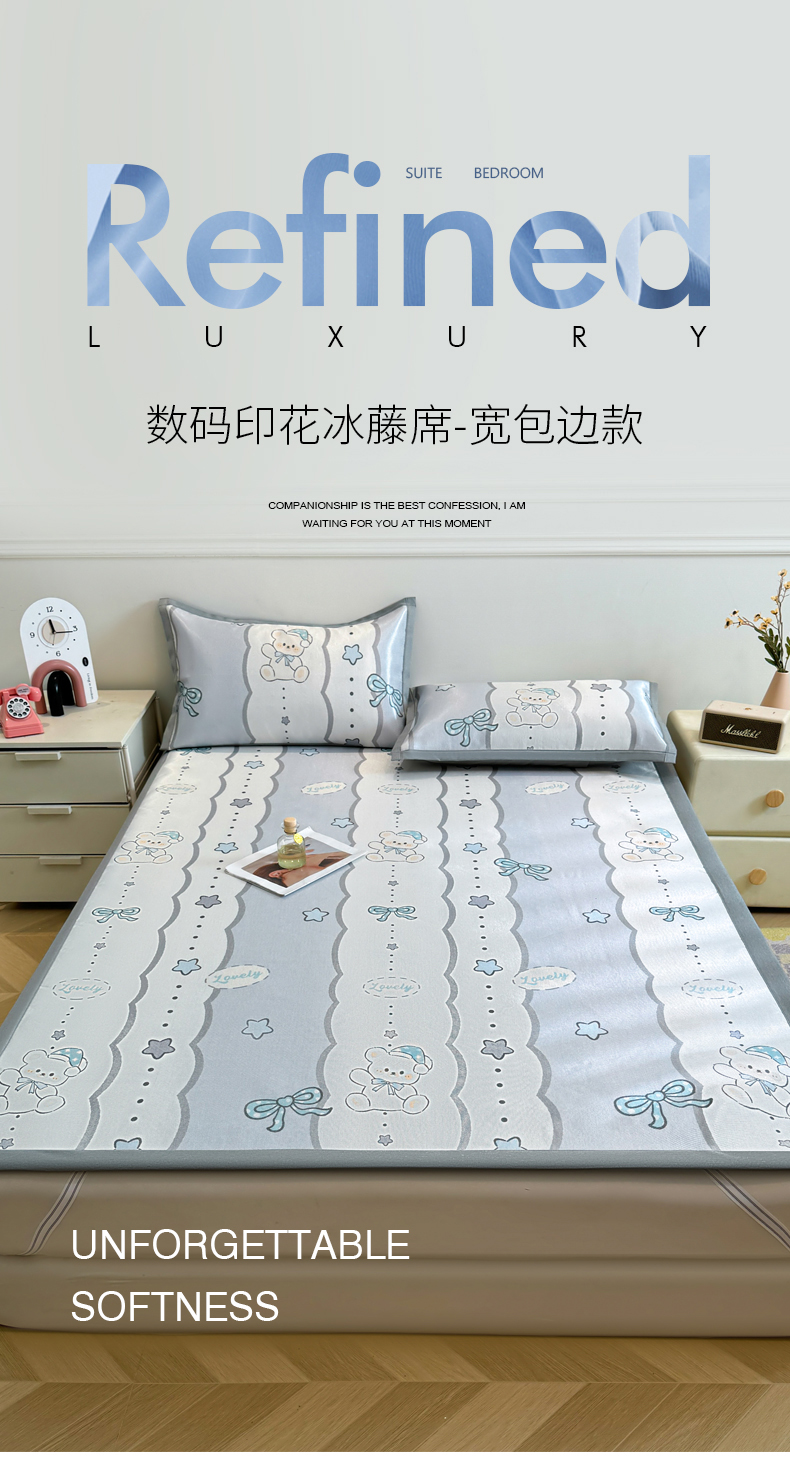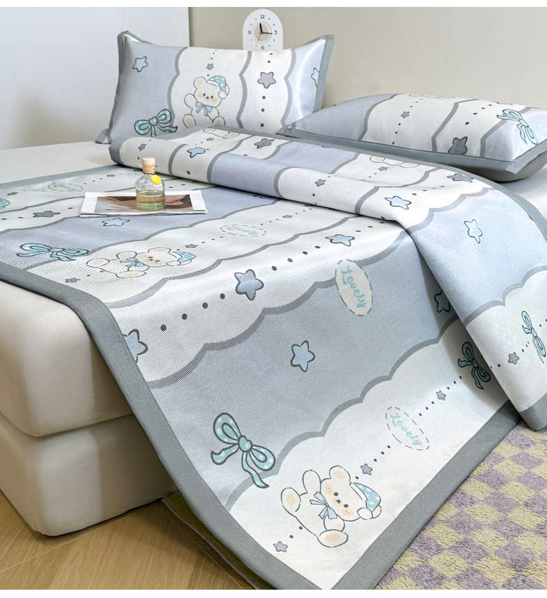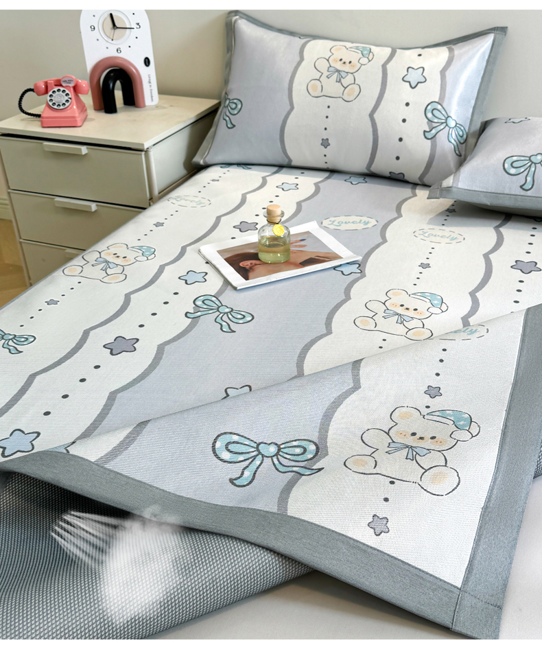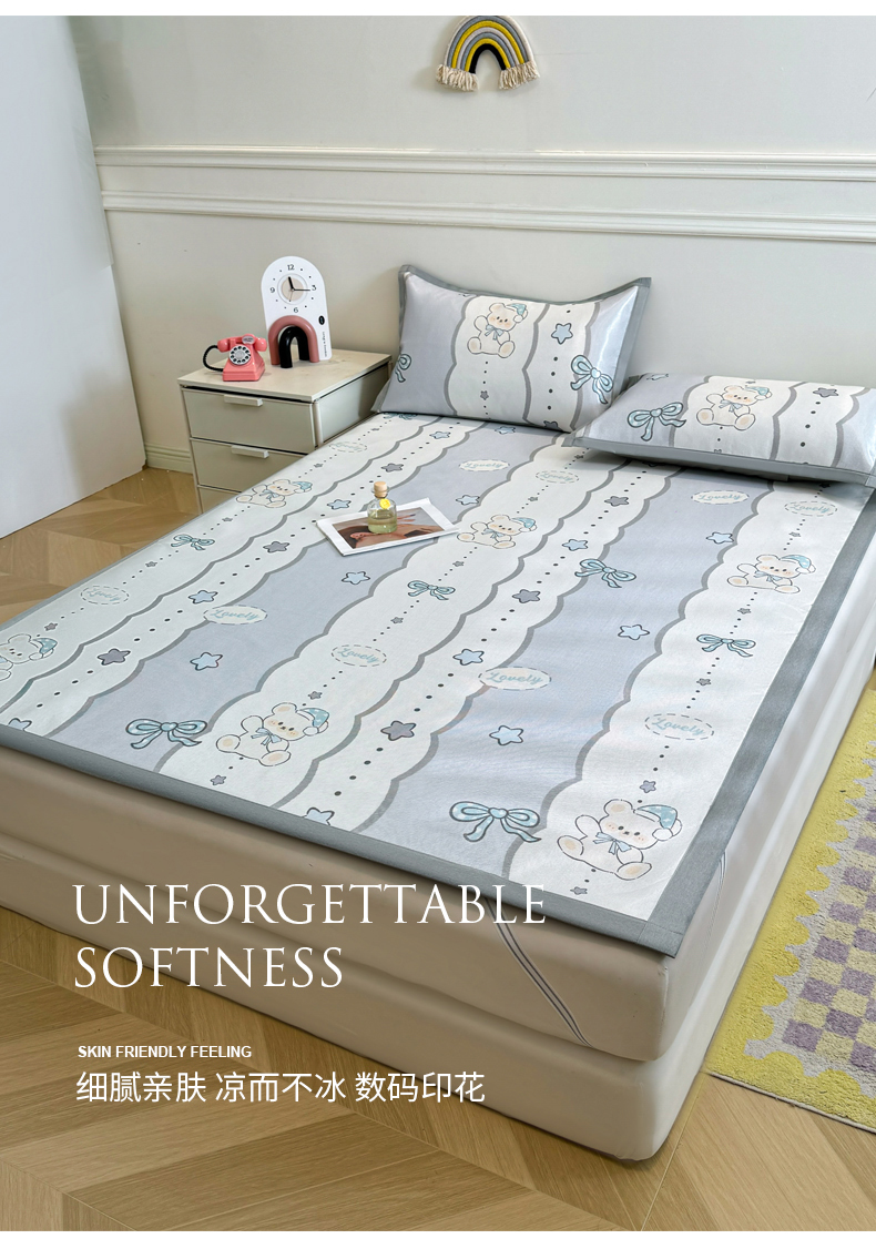 LIFE.丽芙 2025春夏季新品数码印花冰藤凉席平铺冰丝凉席印花小清新绑带款三件套(风格二) 甜梦小熊