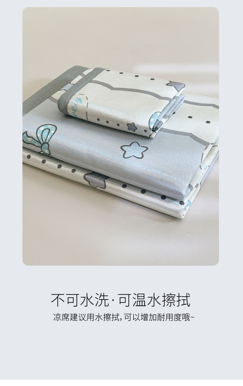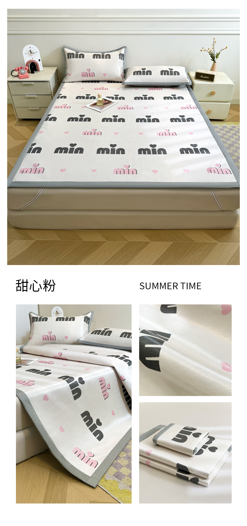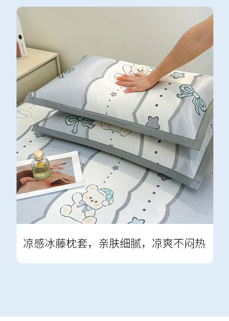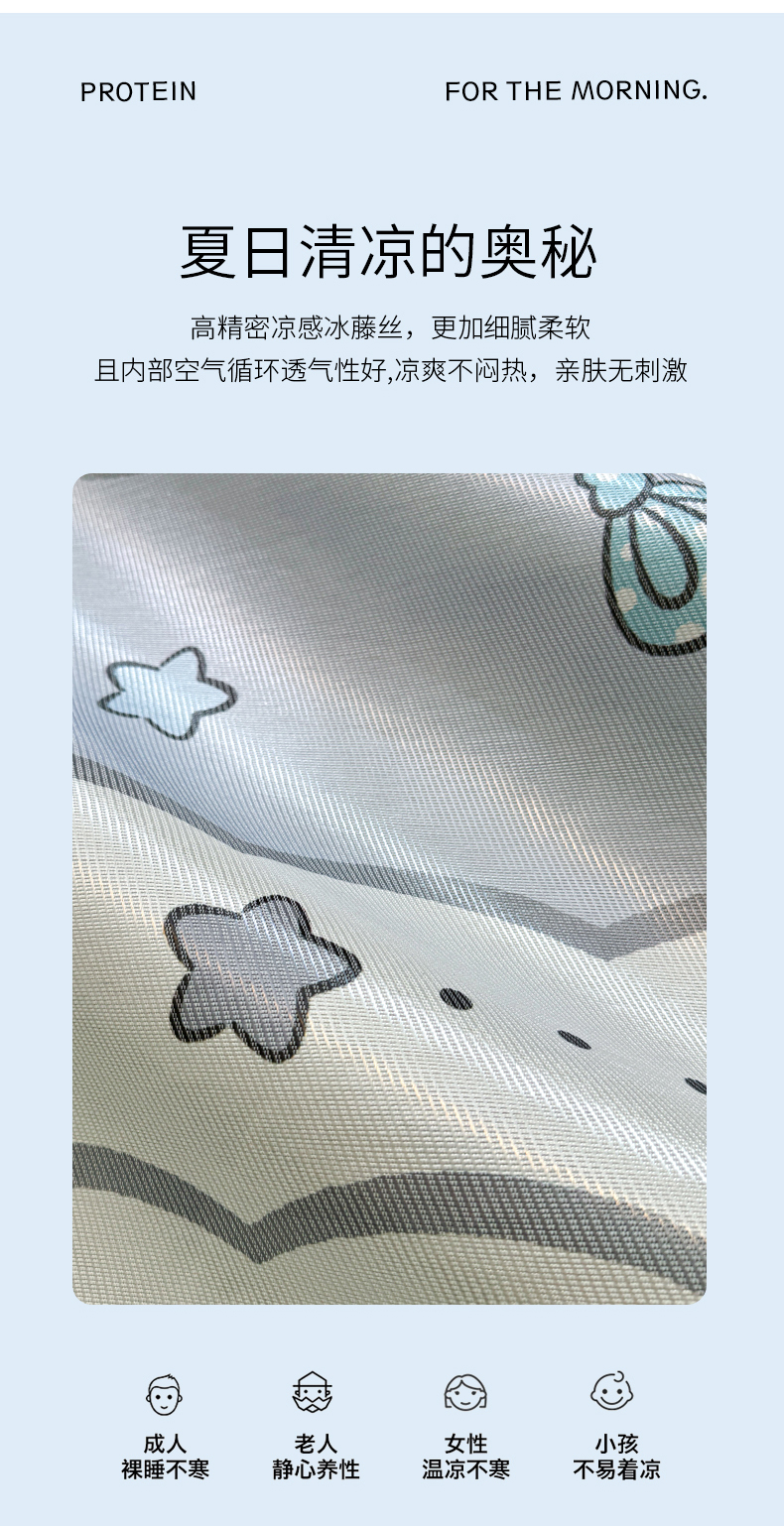 商品名称:LIFE.丽芙 2025春夏季新品数码印花冰藤凉席平铺冰丝凉席印花小清新绑带款三件套(风格二) 甜梦小熊