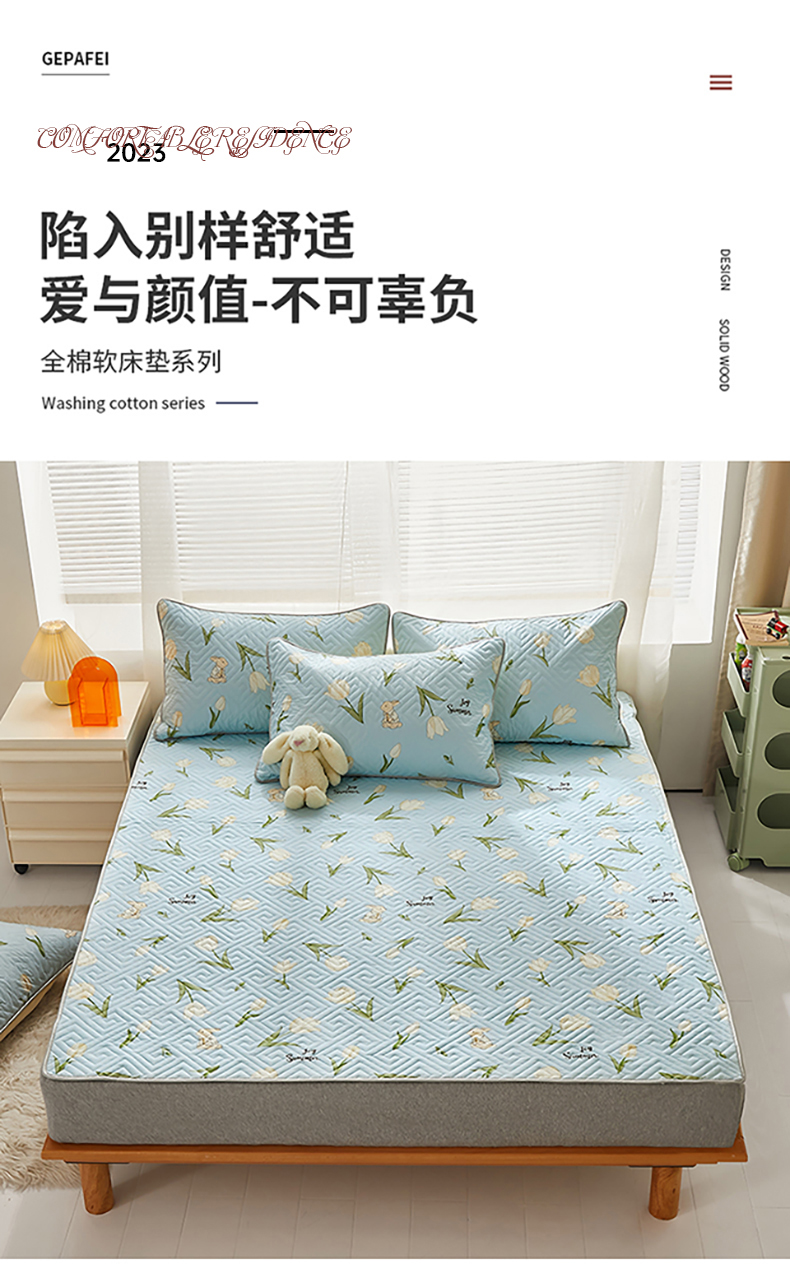 舒居家纺 2025新款全棉纯棉软床垫 百合兔-草绿