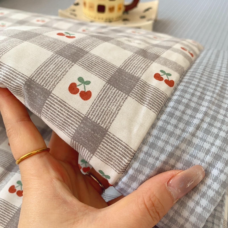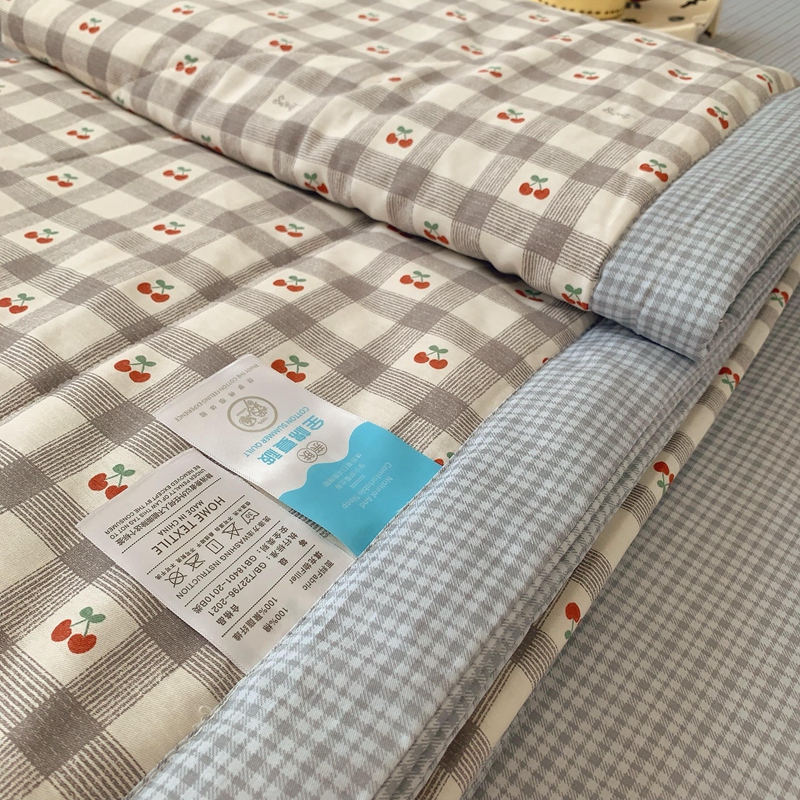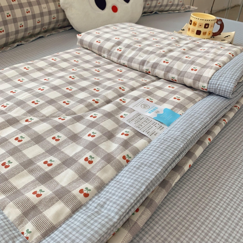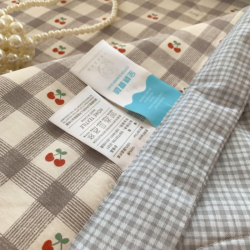 商品名称:莱豫家纺 2025春夏新款纯棉全棉夏被夏凉被四件套 格子樱桃灰