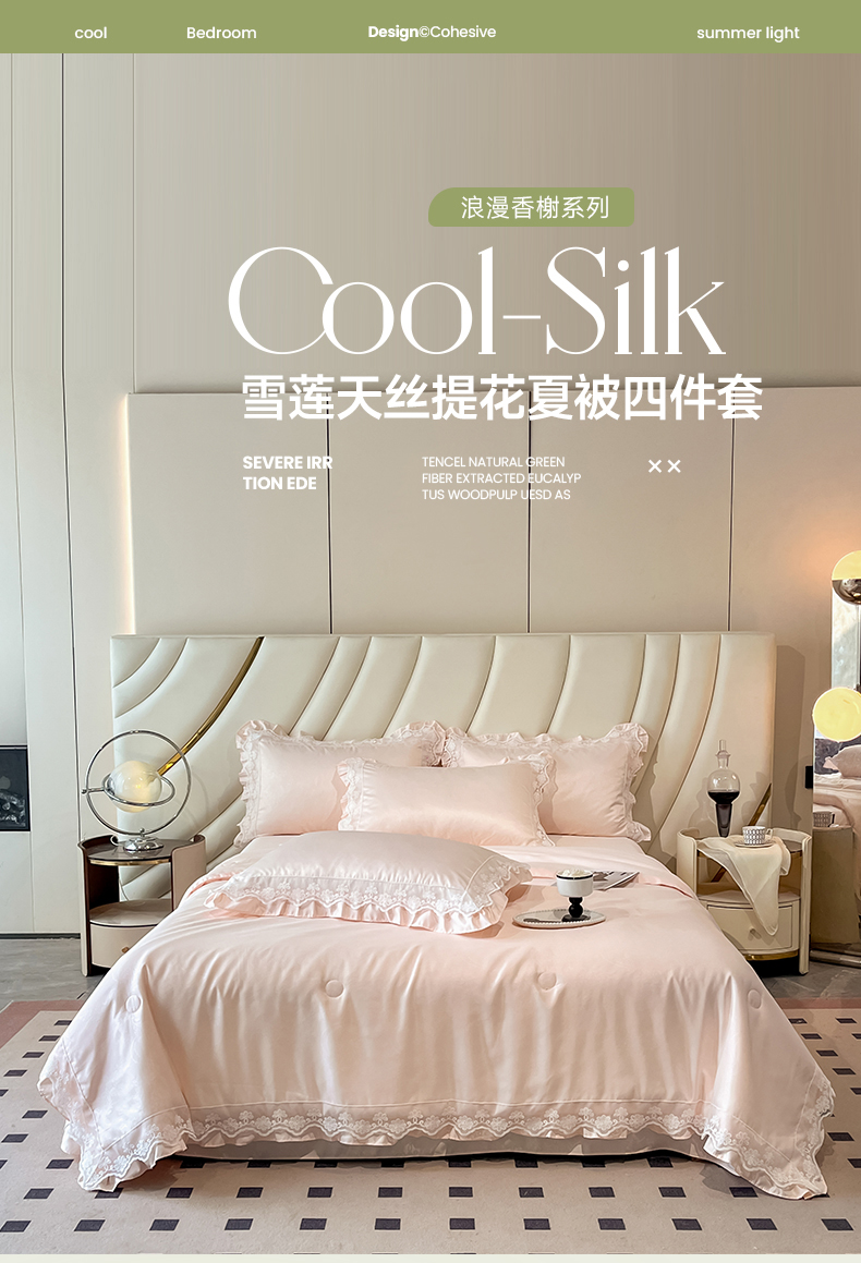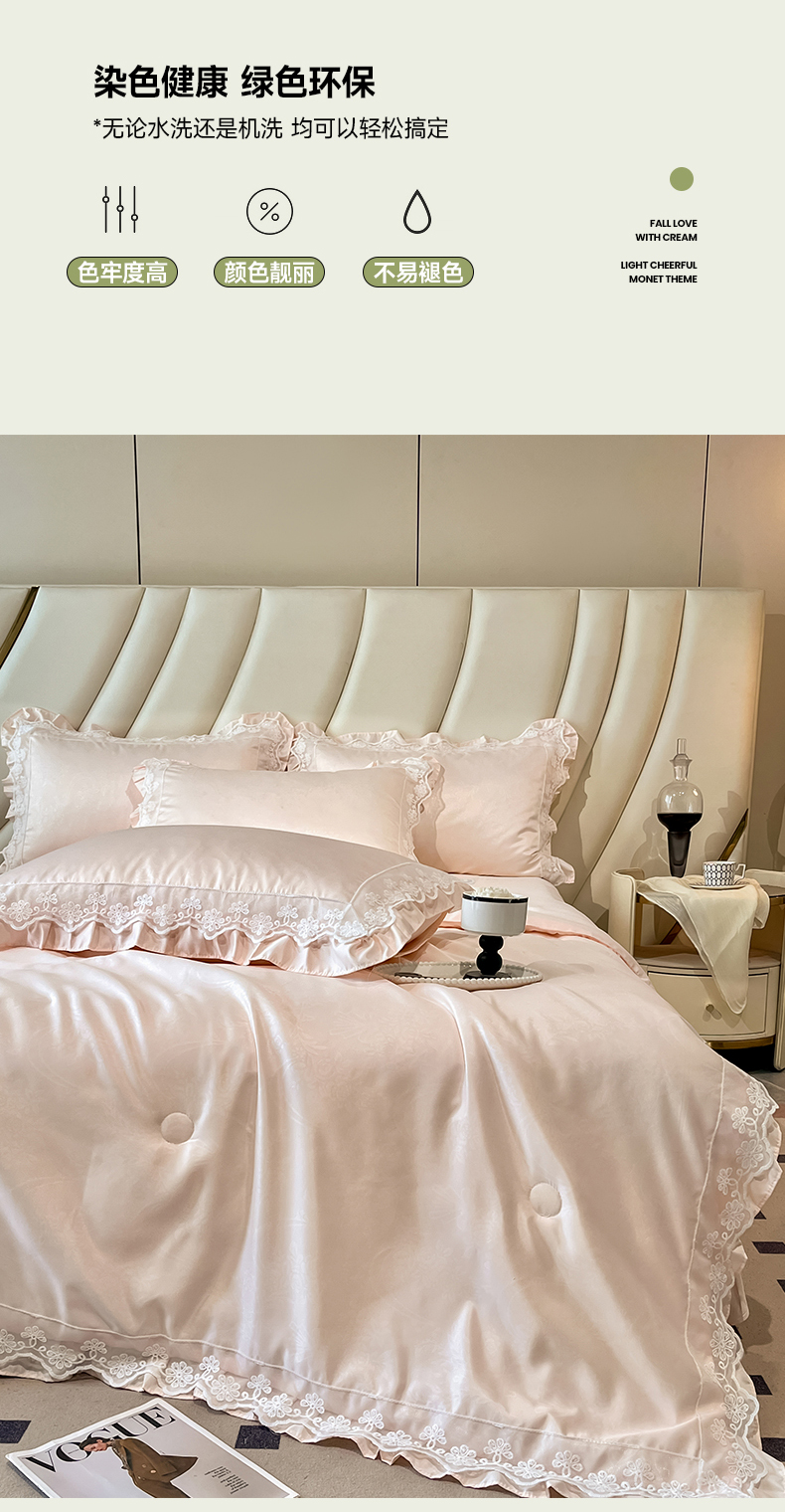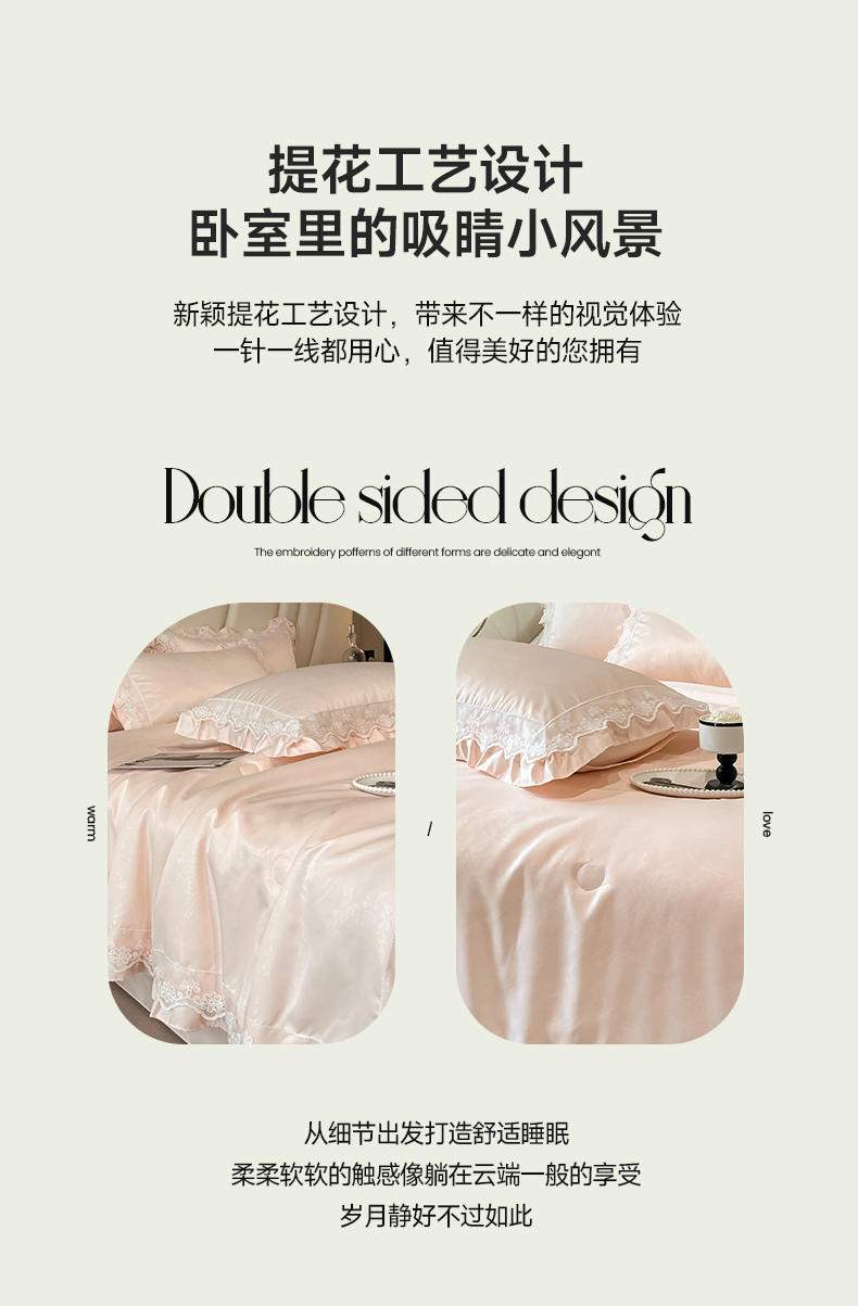 • 91家纺网 家纺一手货源 找家纺 澳梵家居 2025新款雪莲天丝法式提花夏被四件套-浪漫香榭 浪漫香榭-香槟粉