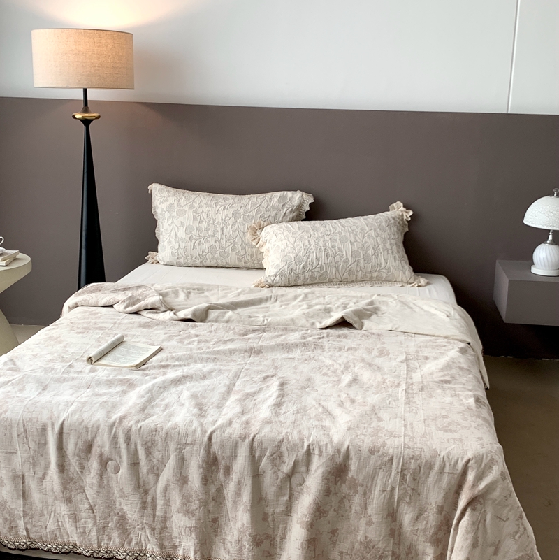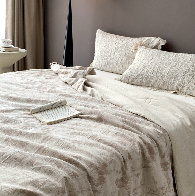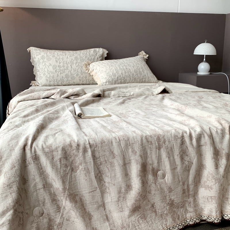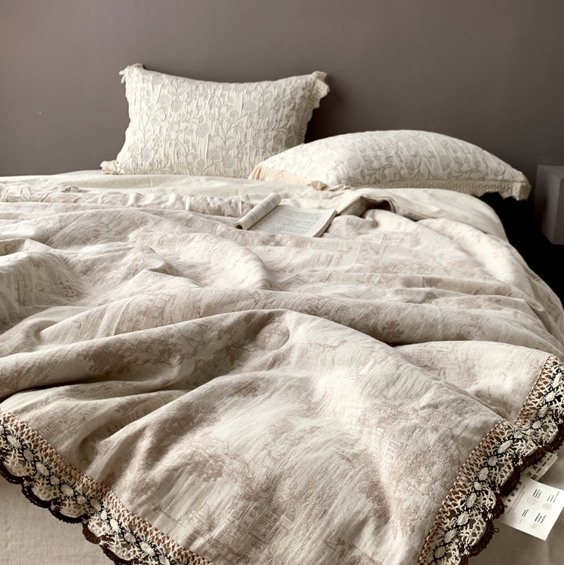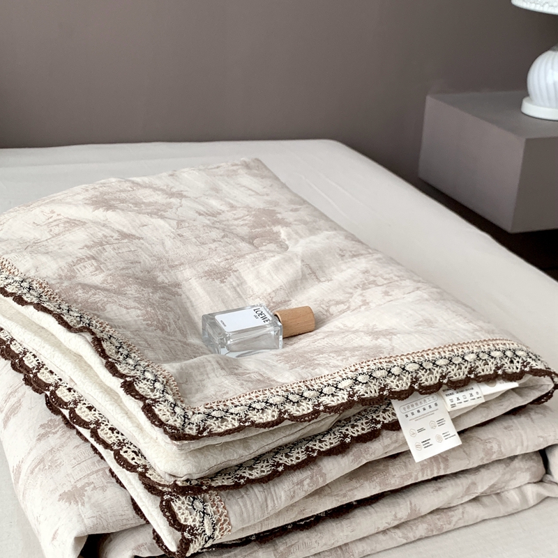 凡客2025新款棉麻色织提花双层纱蚕丝棉夏被(镂空花边款) 忆江南-本色